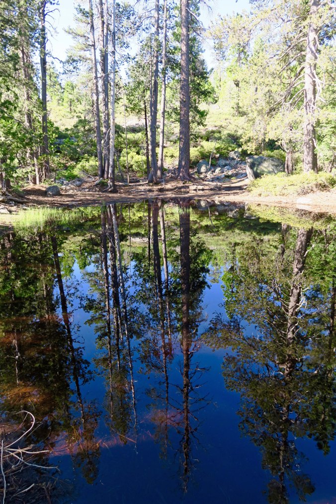 I decided to remain camping where I was and go day hiking. That way I could explore the surrounding area early in the morning and late in the afternoon, while hiding out under a shade tree during the hottest part of the day. I had a number to choose from including incense cedars, ponderosa pines, white firs, and lodgepole pines. There was even a large sugar pine in the neighborhood with its 18-inch-long cones.