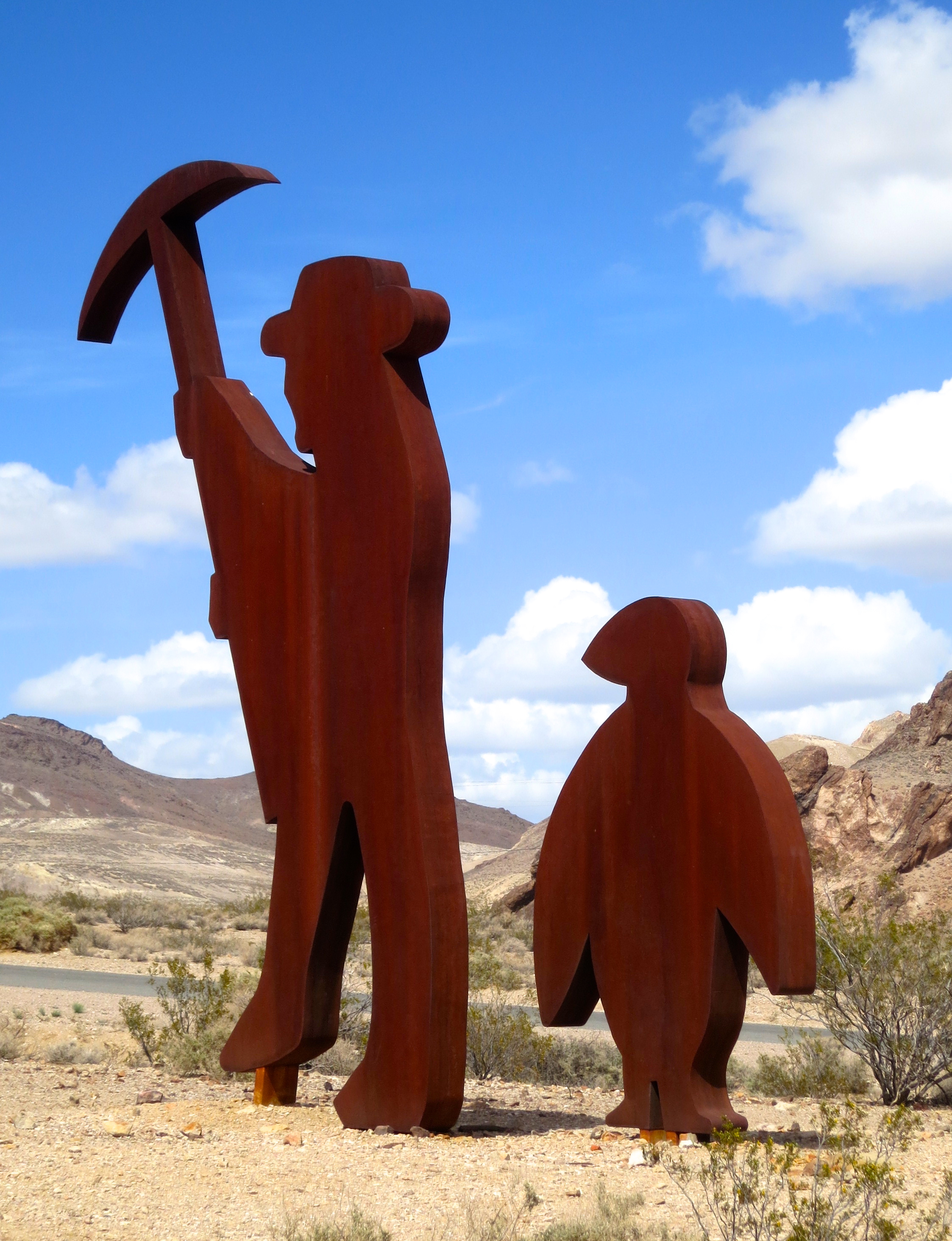 Every lonely desert prospector needs a penguin for company, right? Wait, isn’t that a donkey? The artist Fred Bervoets decided on a penguin for his tribute to Shorty Harris at the Goldwell Open Air Museum. Shorty was a legendary prospector who worked the Rhyolite area.