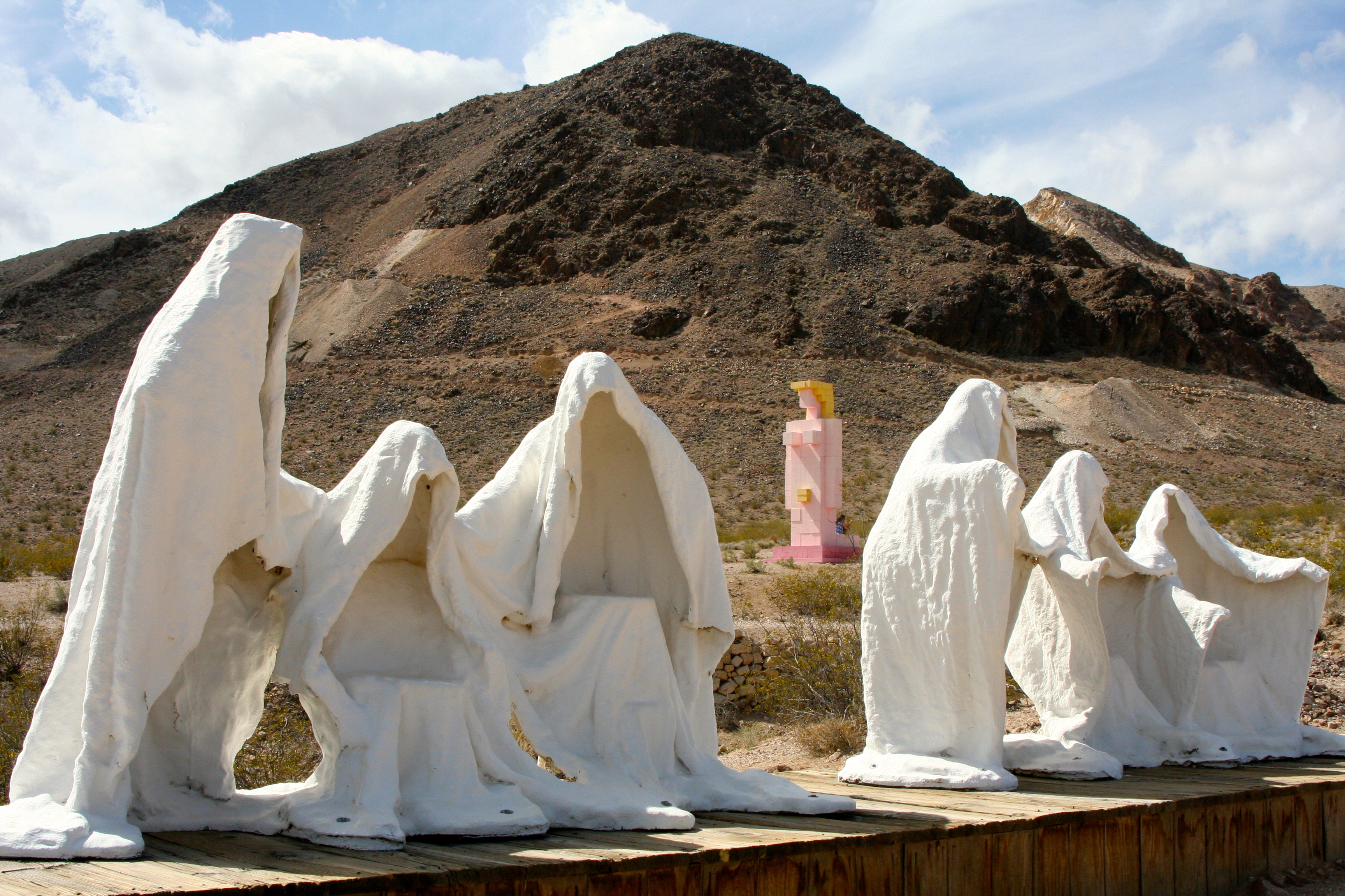 Goldwell was started in 1984 by the Dutch artist Albert Szukalski as a way to display ghostly figures he created by wrapping live models in wet plaster. Soon, other Dutch artists joined him in his efforts to create a sculpture museum in the desert. Today, a Nevada non-profit organization cares for the museum and supports on-site artistic endeavors.