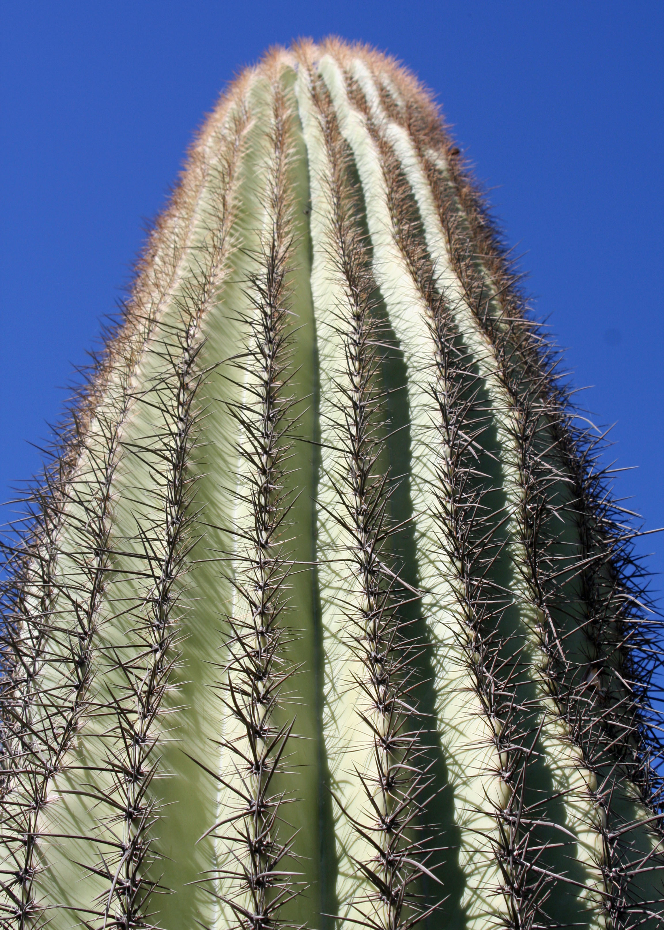 A saguaro “ruler straight.” Note the thorny protection. Peggy and I, and I am sure David and Edith, are quite careful when walking among cacti.