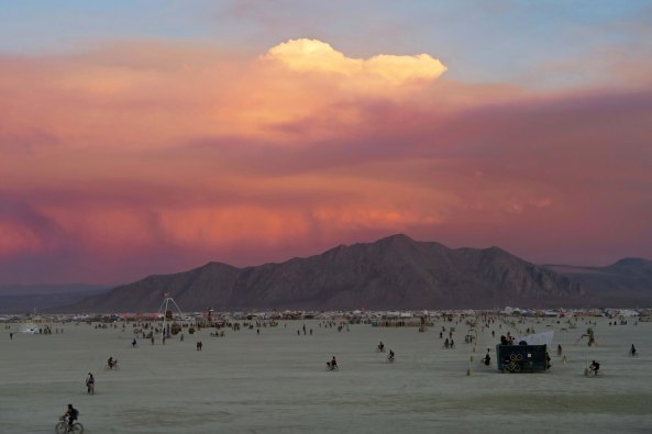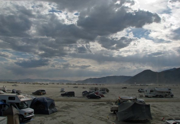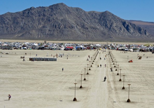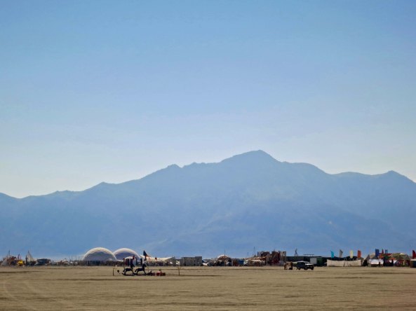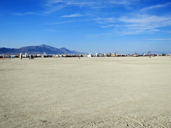 A bike is critical to traveling around the Playa and through Black Rock City. Distances are substantial, as this photo demonstrates. I took this photo from the Man. Looking the other direction would provide a similar scene.