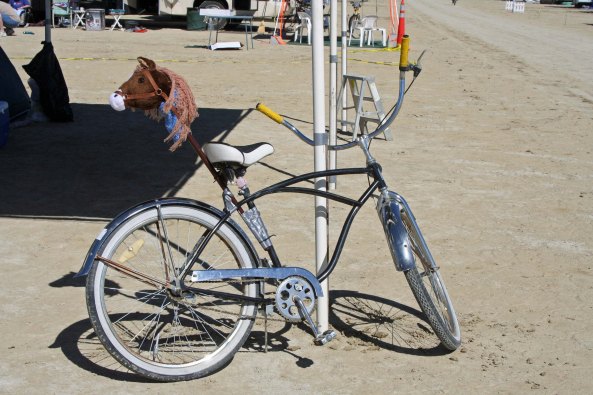 The seven squares miles covered by the event requires a bicycle, so I’ve been riding Horse with No Name on my trips to Burning Man ever since. I suspect I’ve put on several hundred miles during my 11 trips into the desert. The bikes have changed, and the stick horses have changed, but the name has remained.