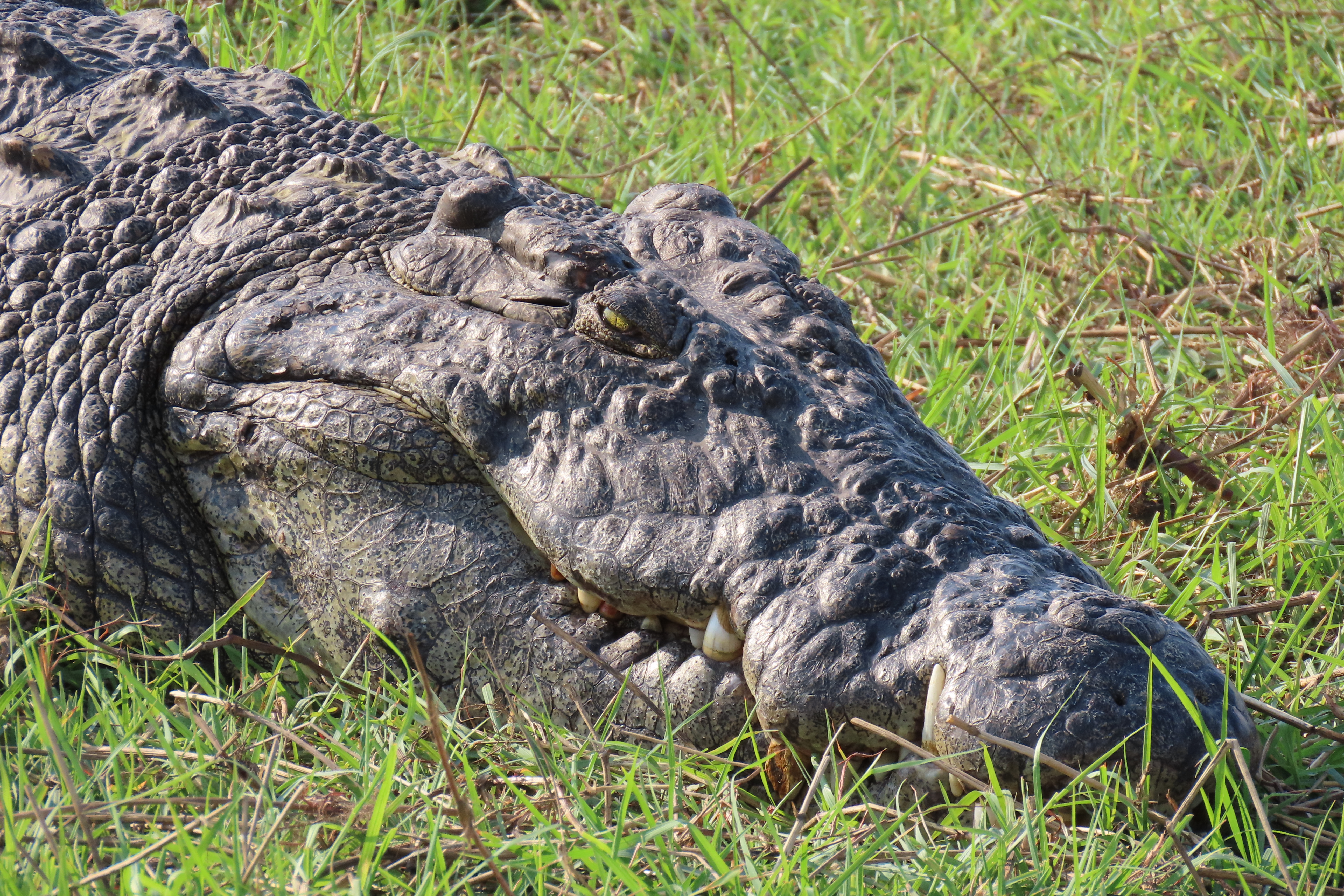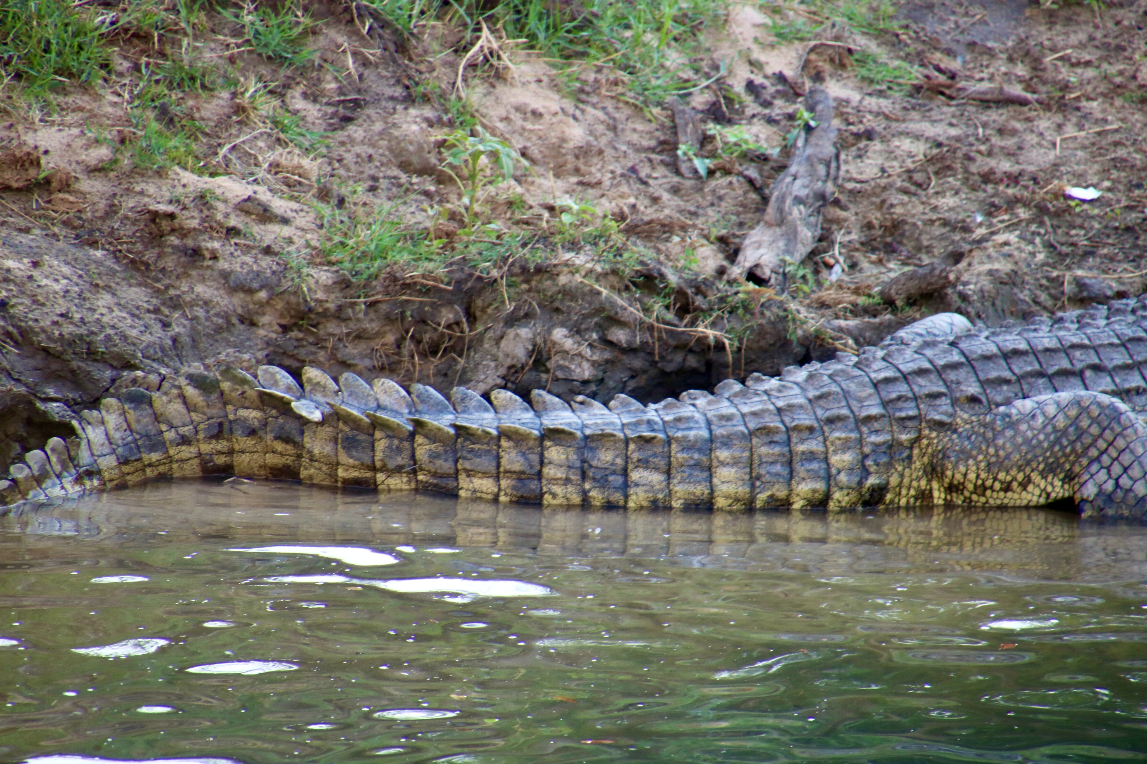 Nile Crocodiles are fascinating, fierce predators. You don’t want to mess with them. We were able to see them lying on the shores of rivers, lakes and ponds, slipping through the water, and even fighting. There is nothing endangered about them; they are quite common throughout sub-Saharan Africa. Large males can reach a length of 14 feet and weigh up to 1700 pounds. Females up to 12 feet and 550 pounds.