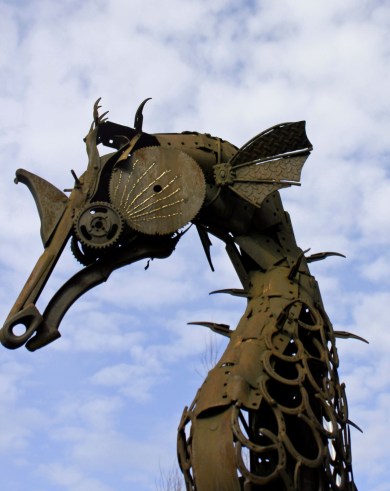Outside, two dogs were driving a car, Peggy went nose to nose with a bear, and Ken had a shouting match with a rooster. There were also a lion, owls and another Buddha. Coombs was our kind of town.
