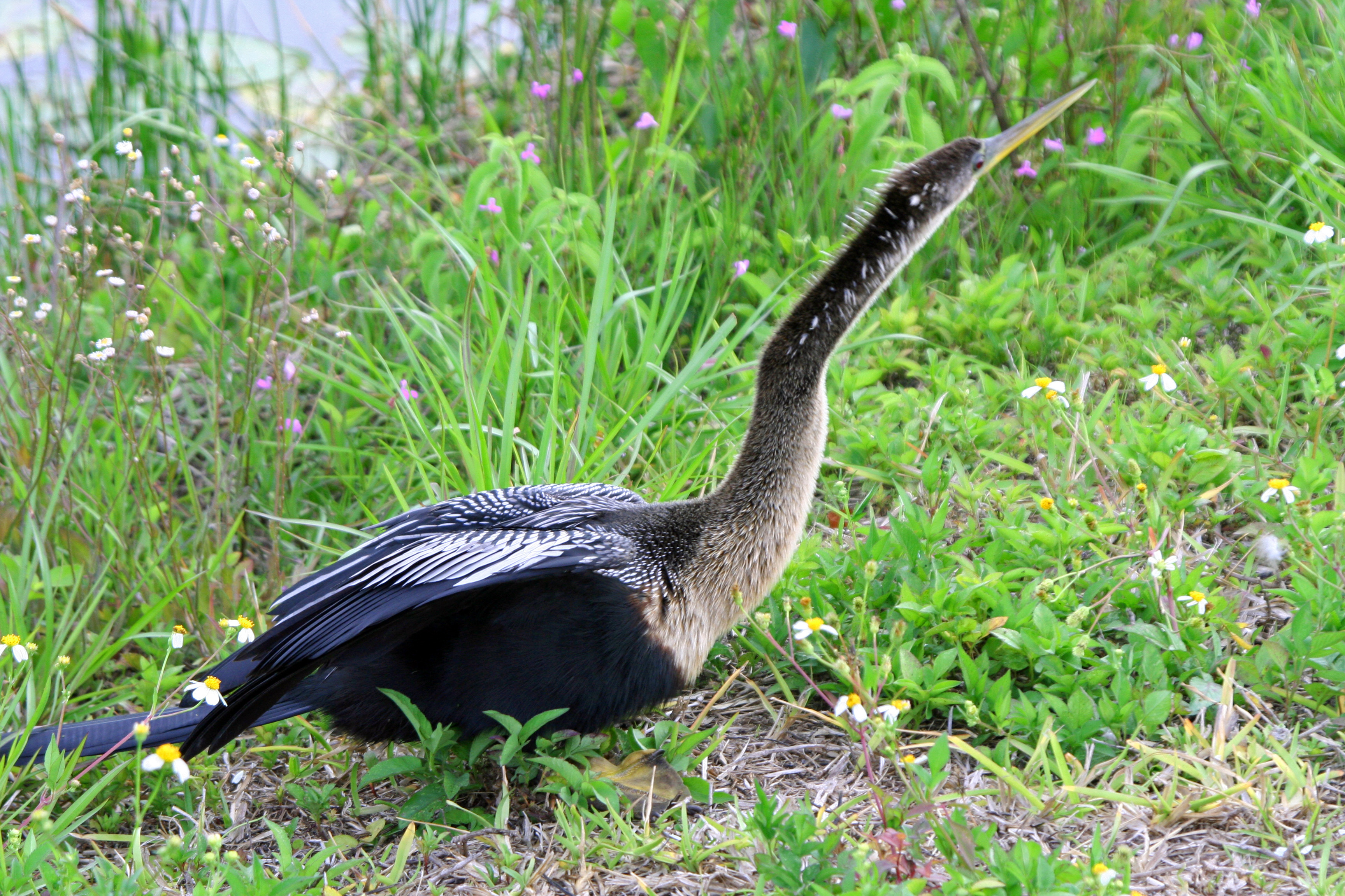 This Anhinga in Everglades National Park is obviously eyeing something in the grass next to it. Like Cormorants, Anhinga are designed to catch their dinner while diving and are well designed to do so.