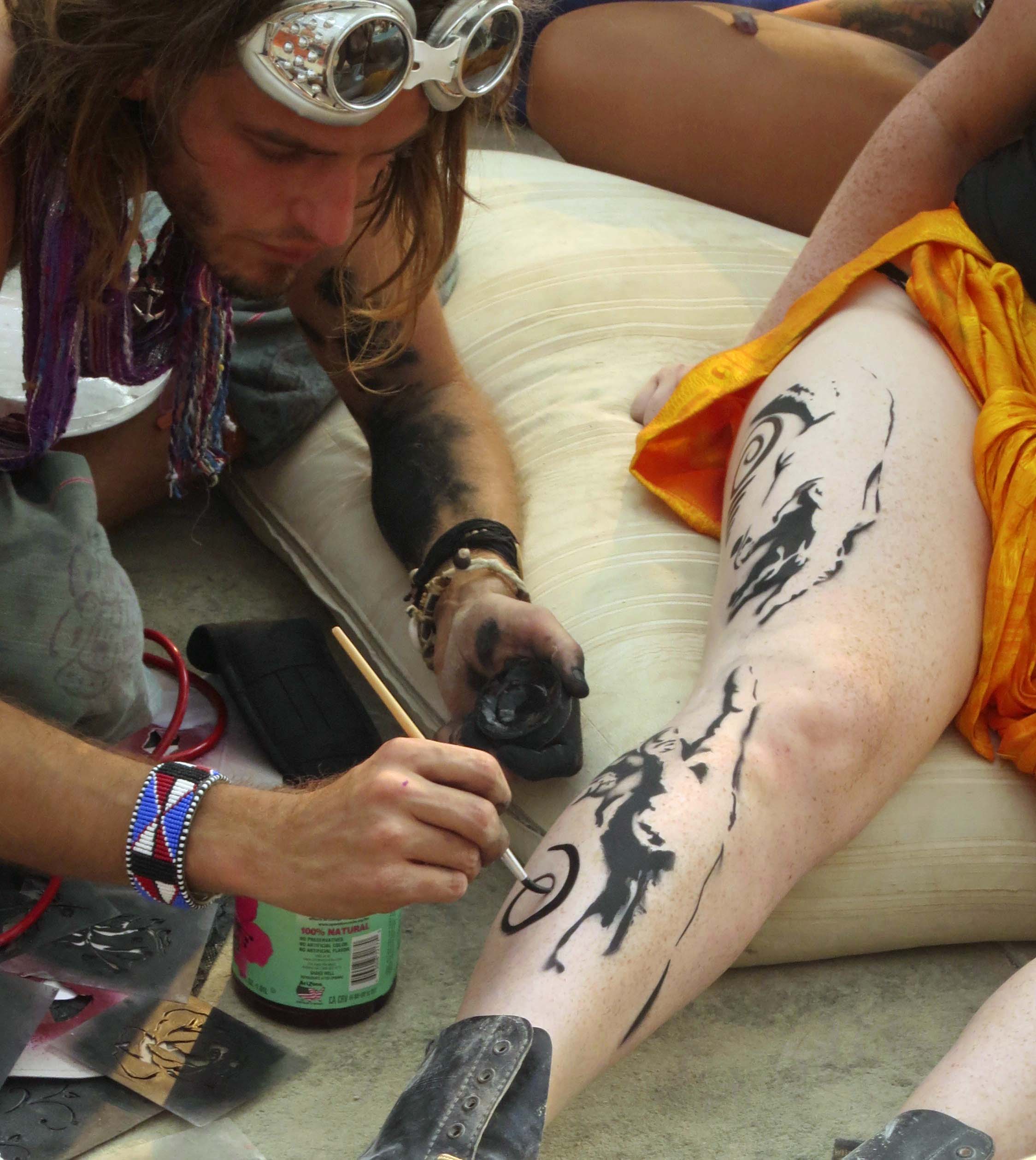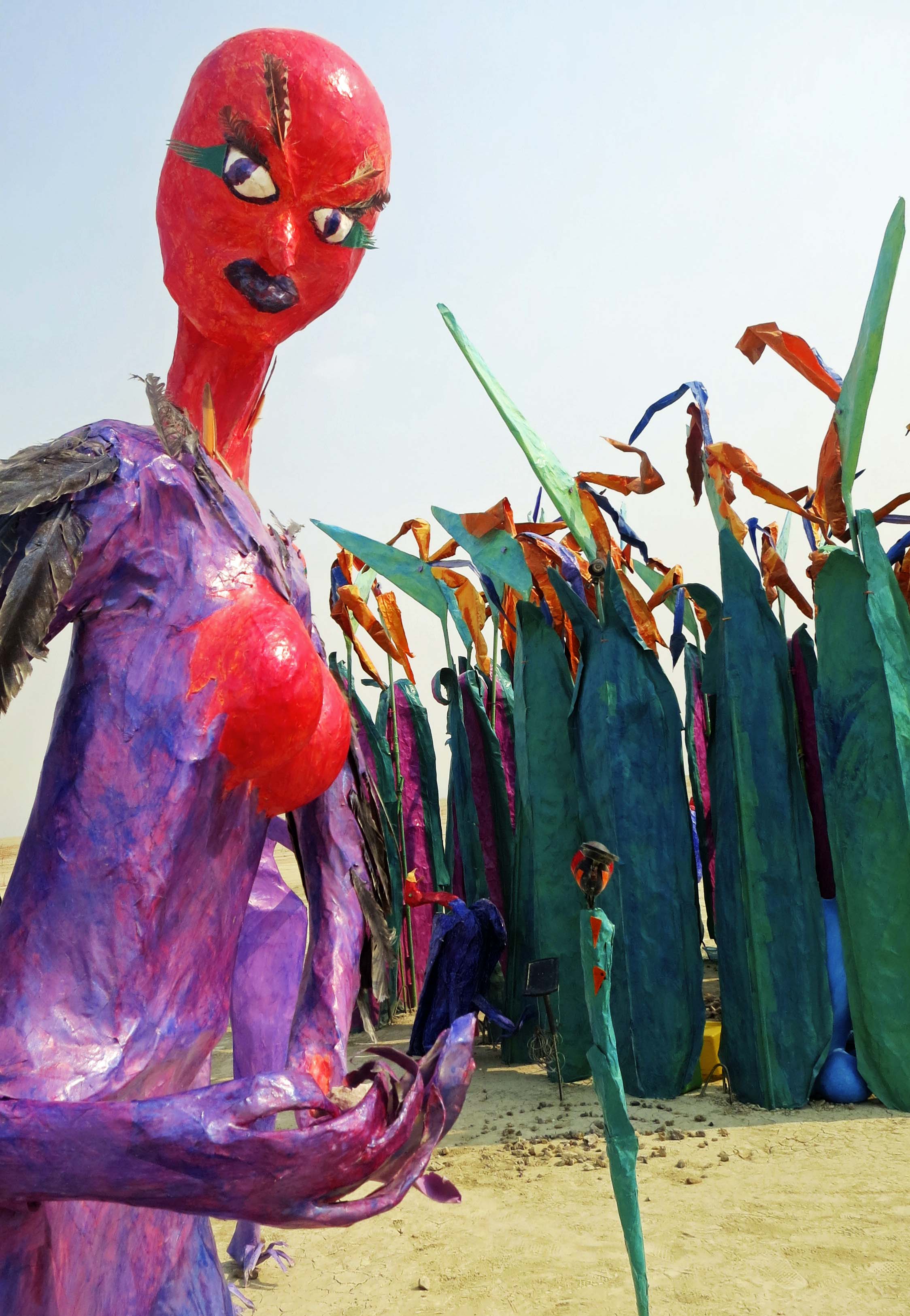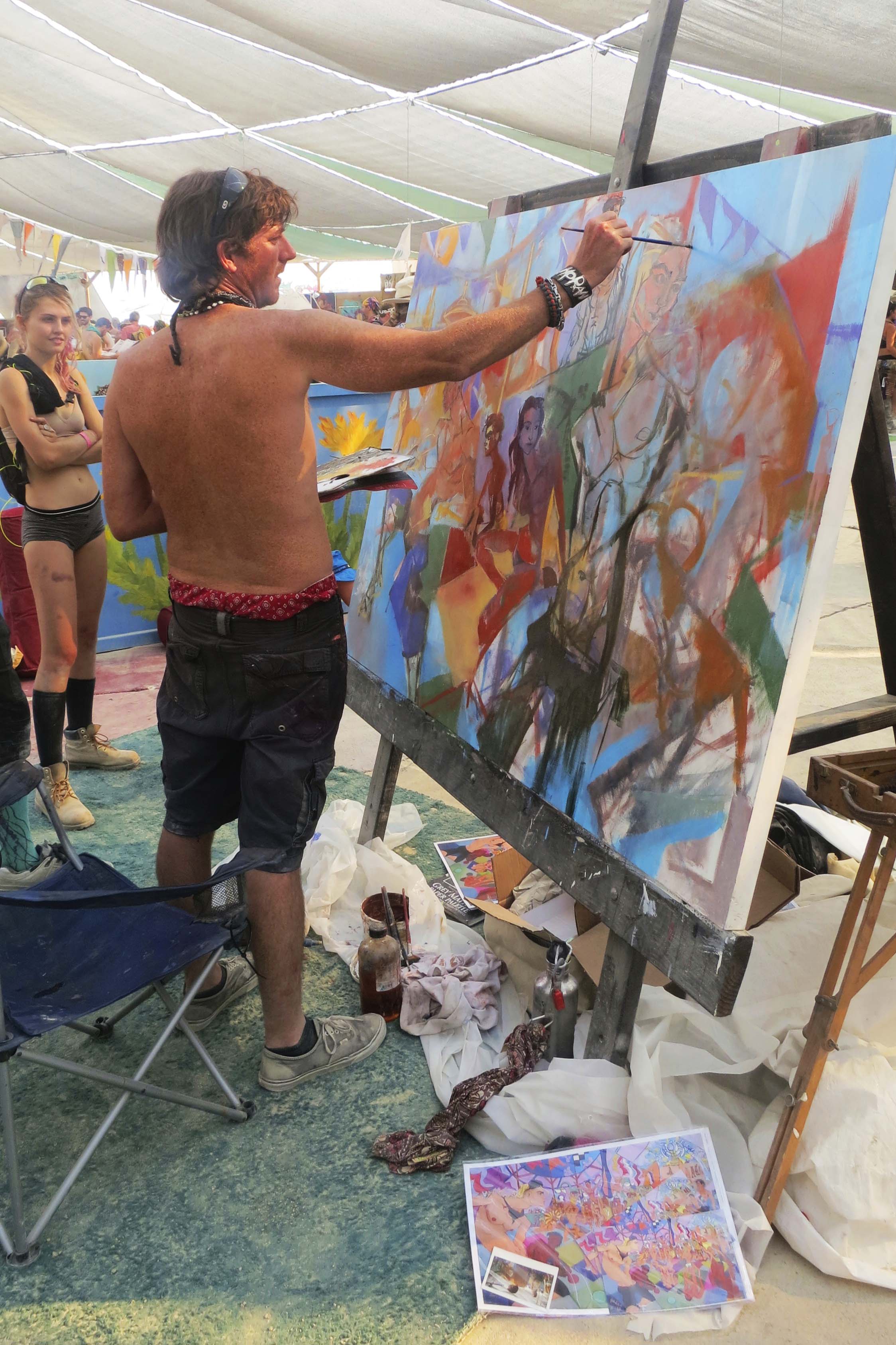 The art of Burning Man is as different as the artists that create it. We discovered a whole tent full of beautifully rendered paintings with mythical/Eastern themes.