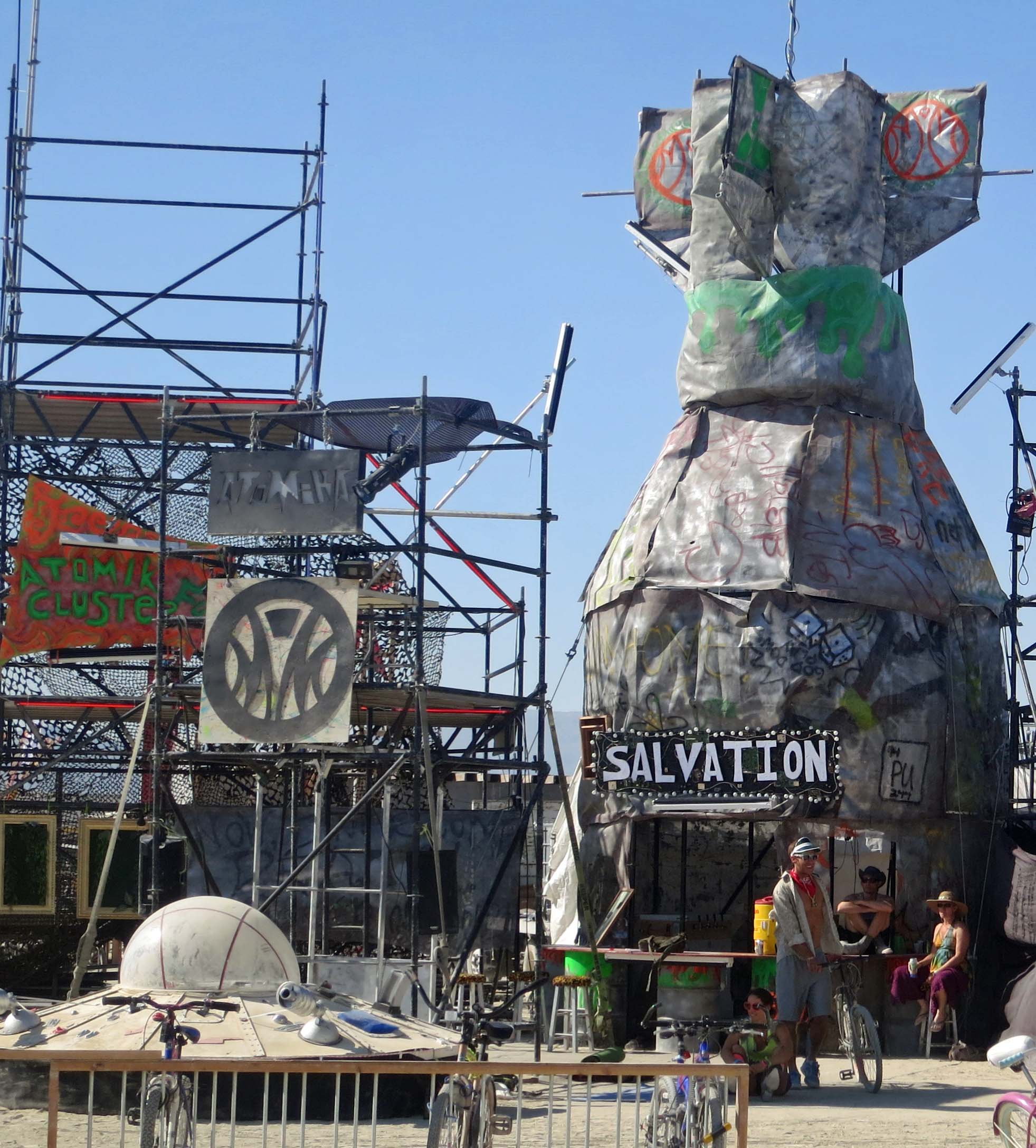 I’ve had another thought about the flying saucer the Man was perched on for 2013. Maybe it was a huge clam. BTW, do you see the two small feet extending out from each side. Those were slides you could exit the Man on. I clocked myself at 60 MPH after Tom/Adios Lovering guaranteed it was a gentle ride down. Note to self: Never believe anything Tom tells me. But I knew that.