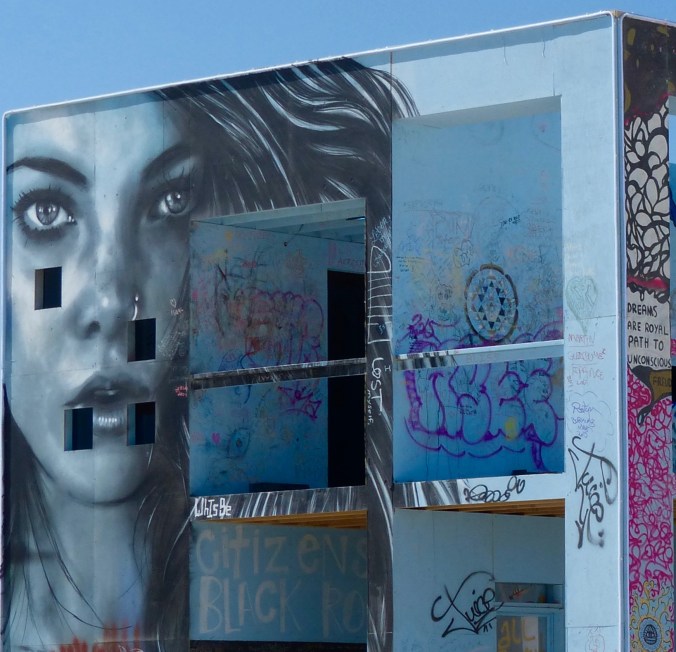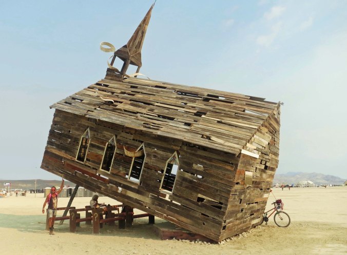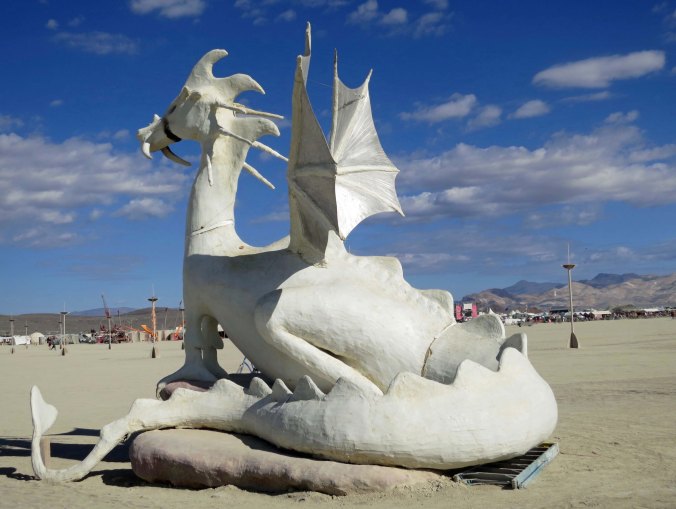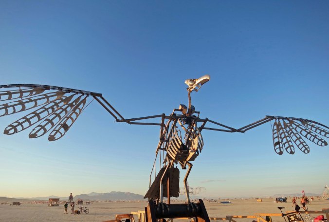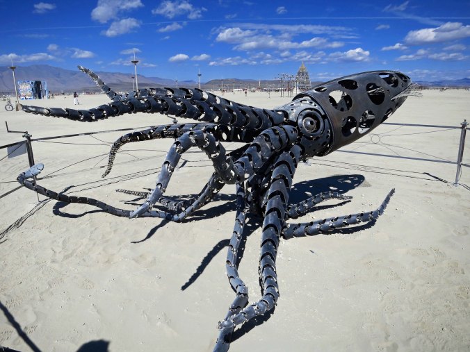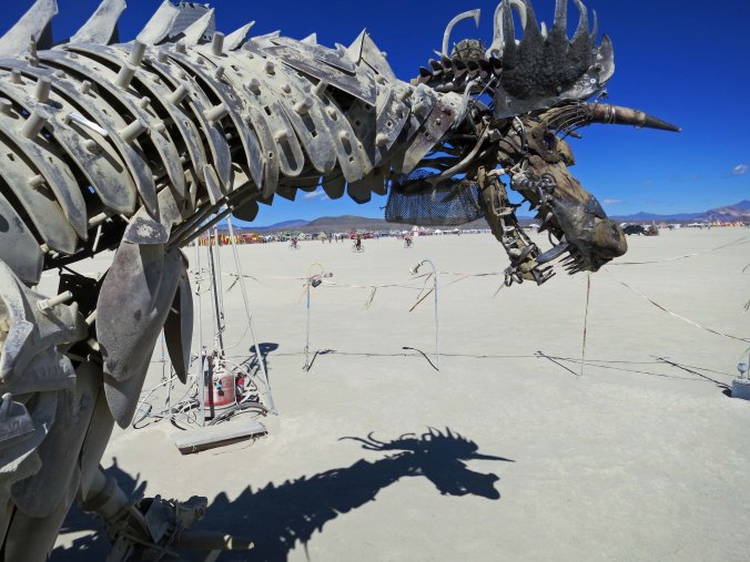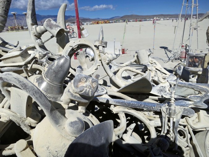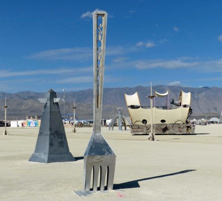 As I’ve noted before, my primary reason for going is to see the art. It’s located everywhere. Even with a bike, it’s difficult to see it all— and I always miss pieces. This year, I had to skip the first four days because of forest fires threatening our home. I only had three days to cover what I normally do in seven. I was on the bike a lot. My tail was complaining loudly by Sunday. (For those of you who have been following the saga of the burning forest, we are out of the woods, so to speak. Level 1, 2, and 3 evacuation notices have been dropped.)