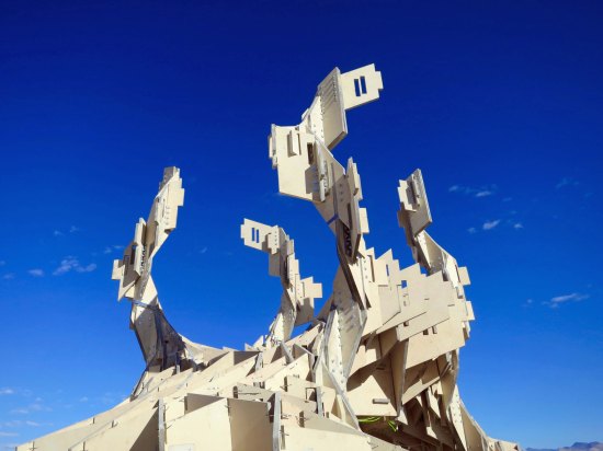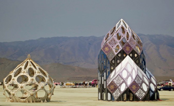 The art at Burning Man ranged from this 70 foot tall Flower Tree Temple…