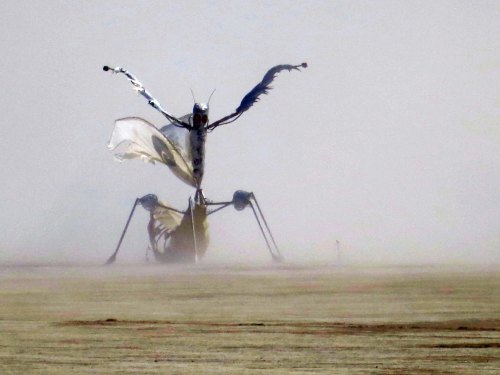 People watching is always big. Some folks develop elaborate costumes and almost everyone makes some effort to look different, even if it’s only putting on a tie-dye T-shirt. Scantily clad is a Burning Man trademark. While total nudity is rare, topless is not uncommon, for women as well as men. I think of it as eye-candy. Staring is rude but appreciative glances are okay. You’d have to wear blinders not to notice and be a robot to not enjoy the views.