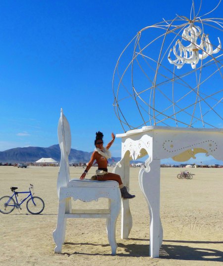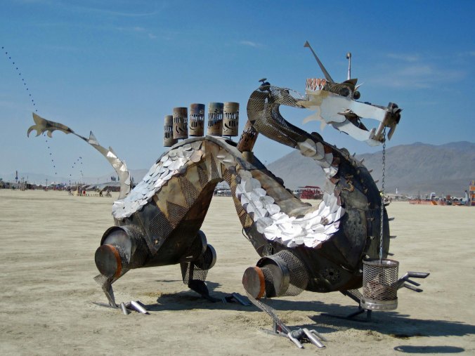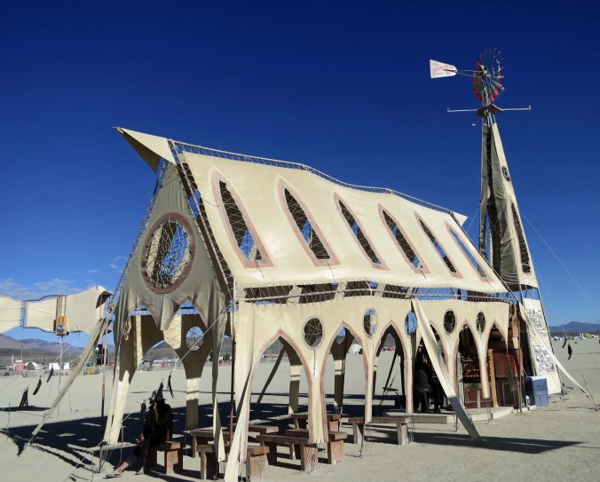 Dozens of classes are offered for those who want to learn something new. They range from the ecology of the Black Rock Desert to sensuous massage: BYOM. (Bring your own mate.) You can also take a class in bondage. I’m normally too busy to be tied up for an hour, however. (grin) Many classes come with an Eastern/New Age twist such as meditation and Yoga: BYOM applies here as well. (Bring your own mat.)