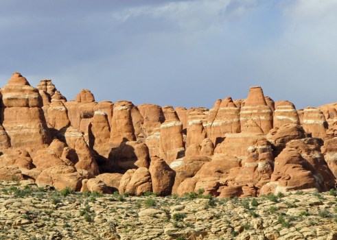Sunshine on the juniper trees provides an interesting contrast to the dark clouds that were promising rain at the campground.
