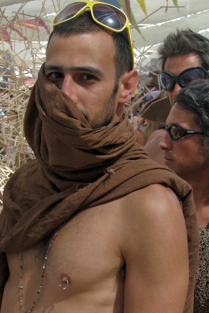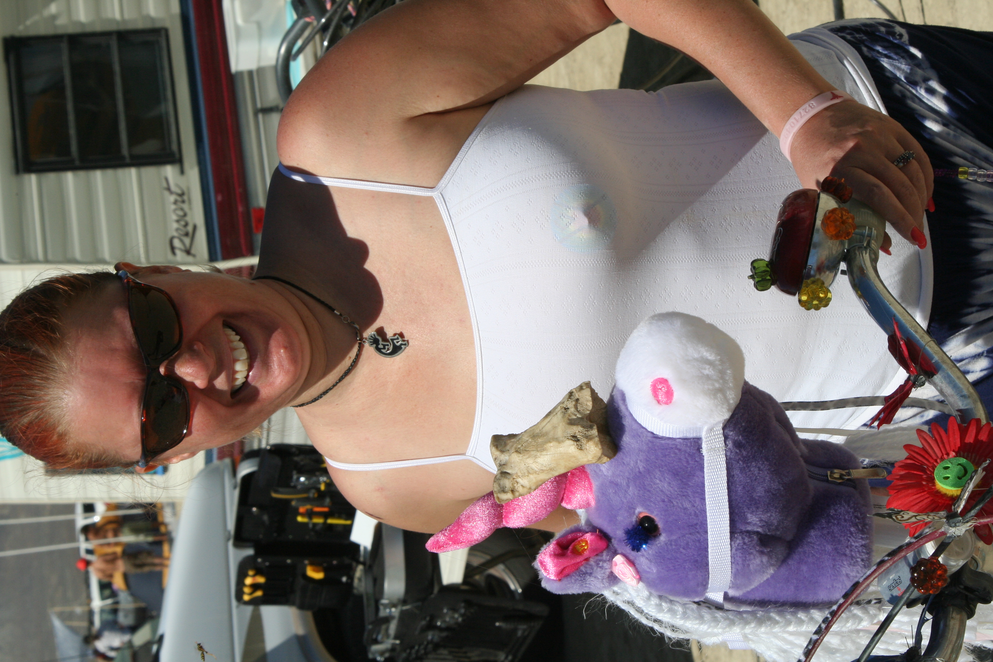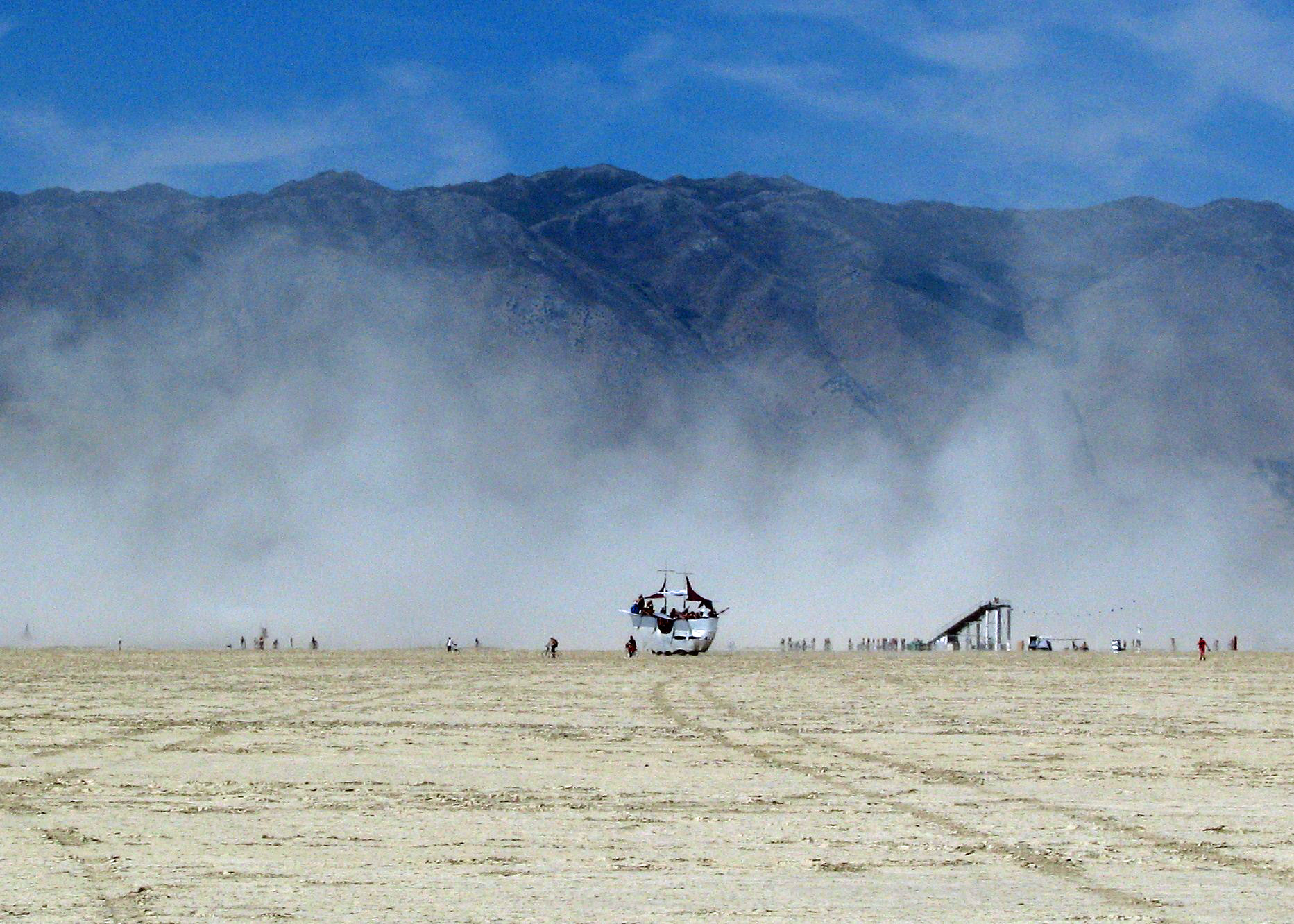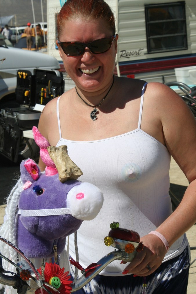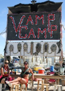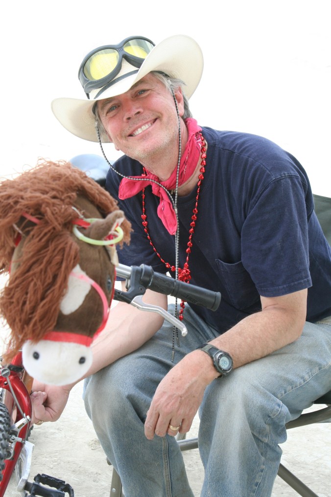 Having completed our official duties, we zip in to Black Rock City, find a campsite, stake out our territory (literally) and set up camp. It’s time to turn on the walkie-talkies. Other members of the Horse-Bone Tribe will soon be joining us.