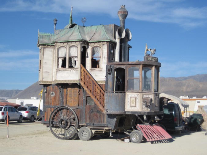 My preference is to check out the visual art, watch and listen to performing artists, play at photography, and hang out with members of the Horse-Bone Tribe. I am also completely happy wandering around and admiring the multitude of costumes and mutant vehicles.