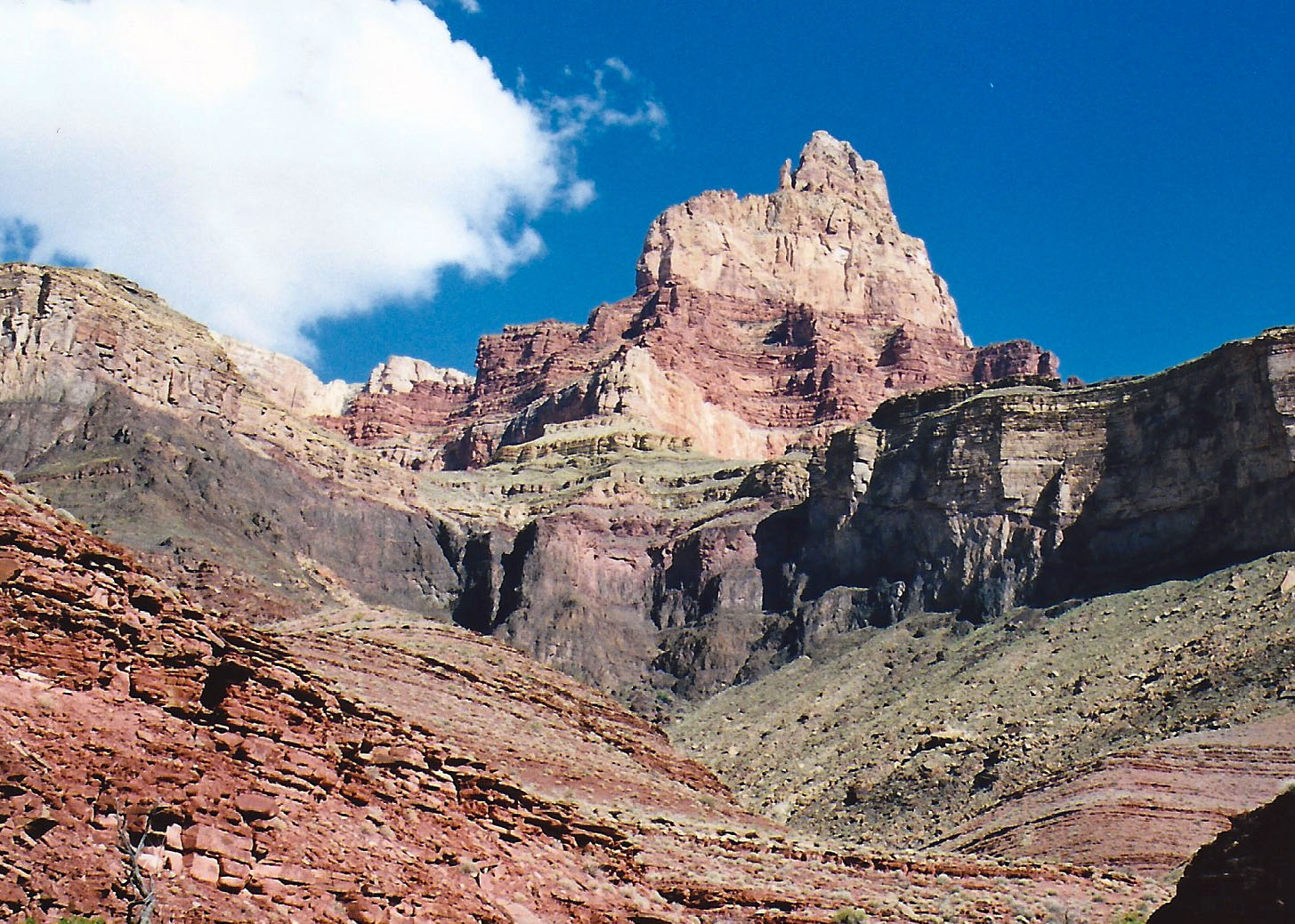 When I left Alaska in 1986 after three years of working as an executive director of a non-profit focused on health and environmental issues, I took six months off to solo backpack various locations in the West. My first stop was the Grand Canyon, perhaps not the best location to kick off a season of backpacking. Day one was spent hiking down the Tanner Trail from the high peaks on the rim to the scrawny tree on the right. I started with a 70 pound pack, including a generous amount of water. It was a steep, unmaintained, rocky and somewhat dangerous trail of 8-9 miles that dropped 4700 feet with the first source of water being the Colorado River.
