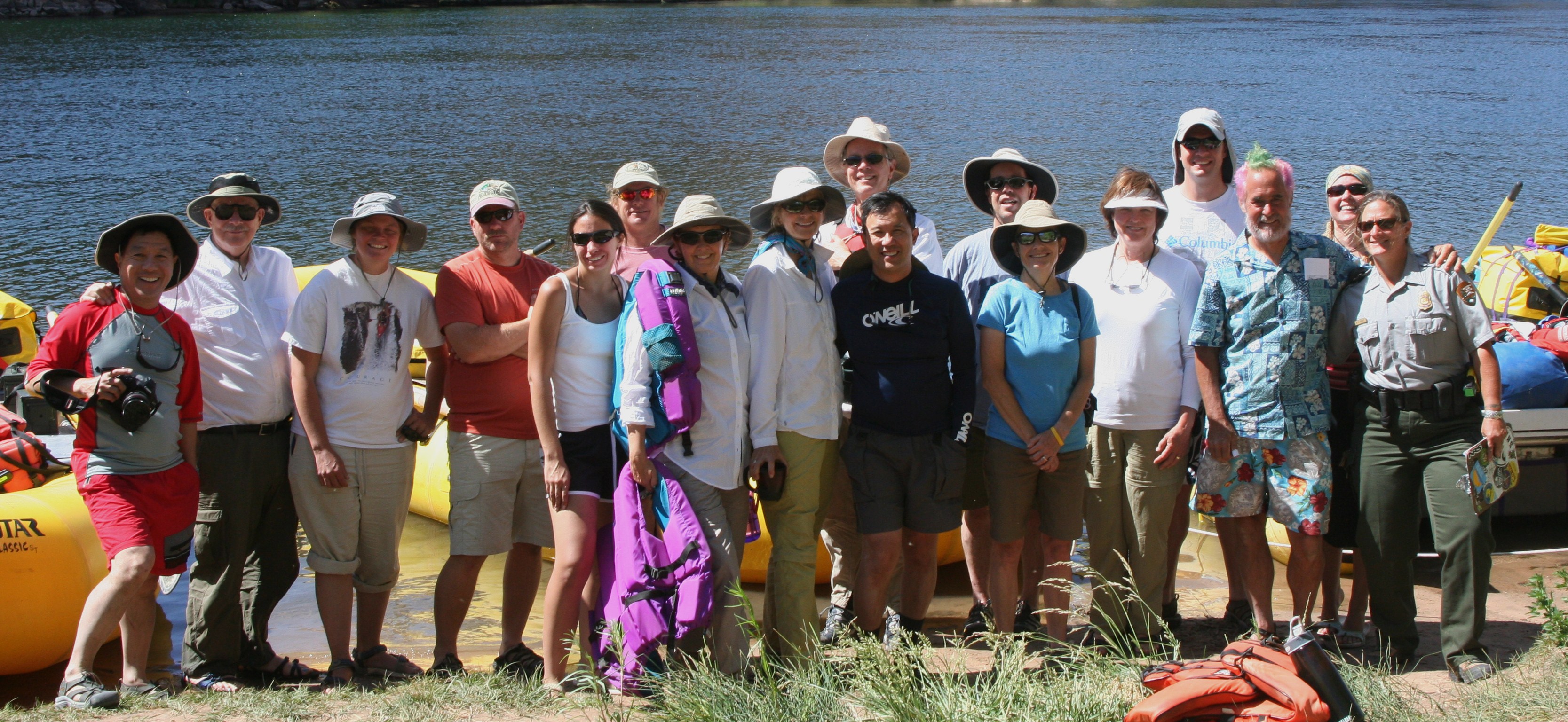 Our intrepid adventurers just before launch on the Colorado River. Ranger Peggy is on the far right.