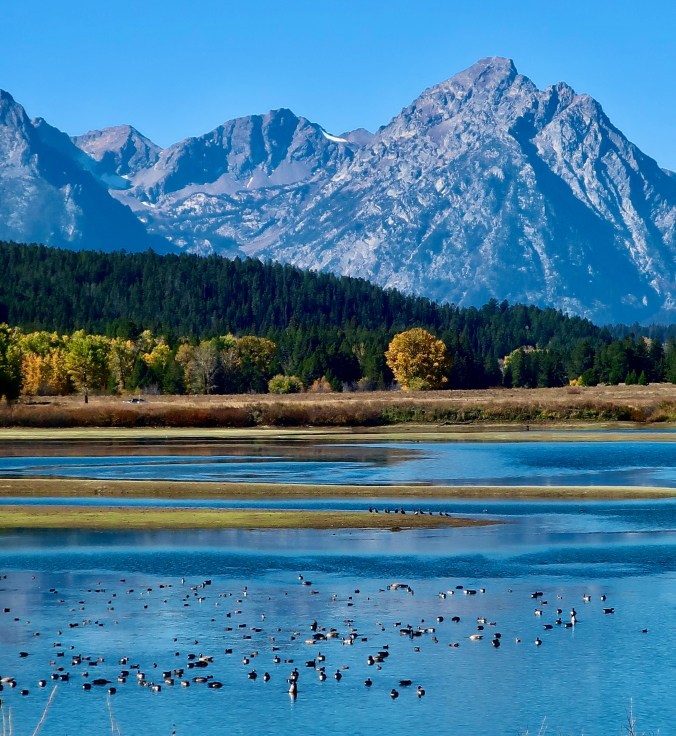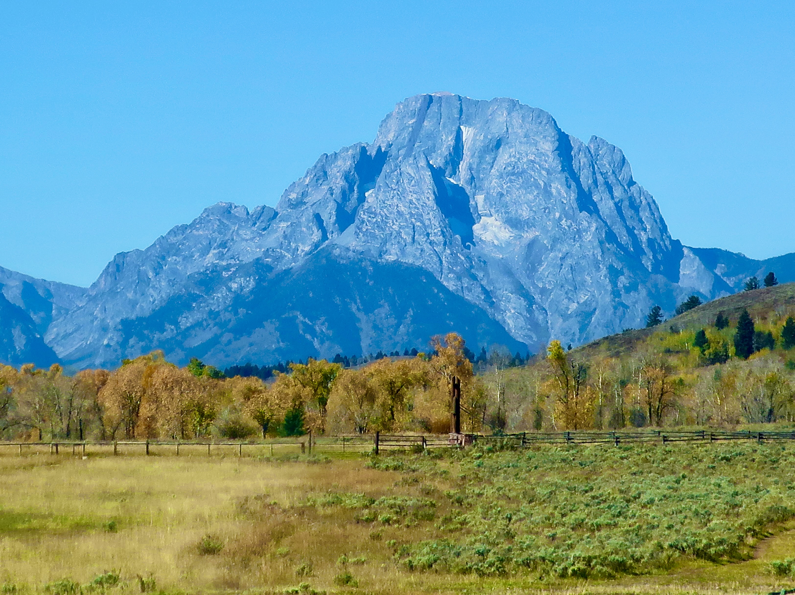 Just before we reached Yellowstone NP on our four month trip around the US last fall, we drove through Grand Tetons National Park. I’ll be featuring photos Peggy and I took of the Grand Tetons and the Absaroka Range today.