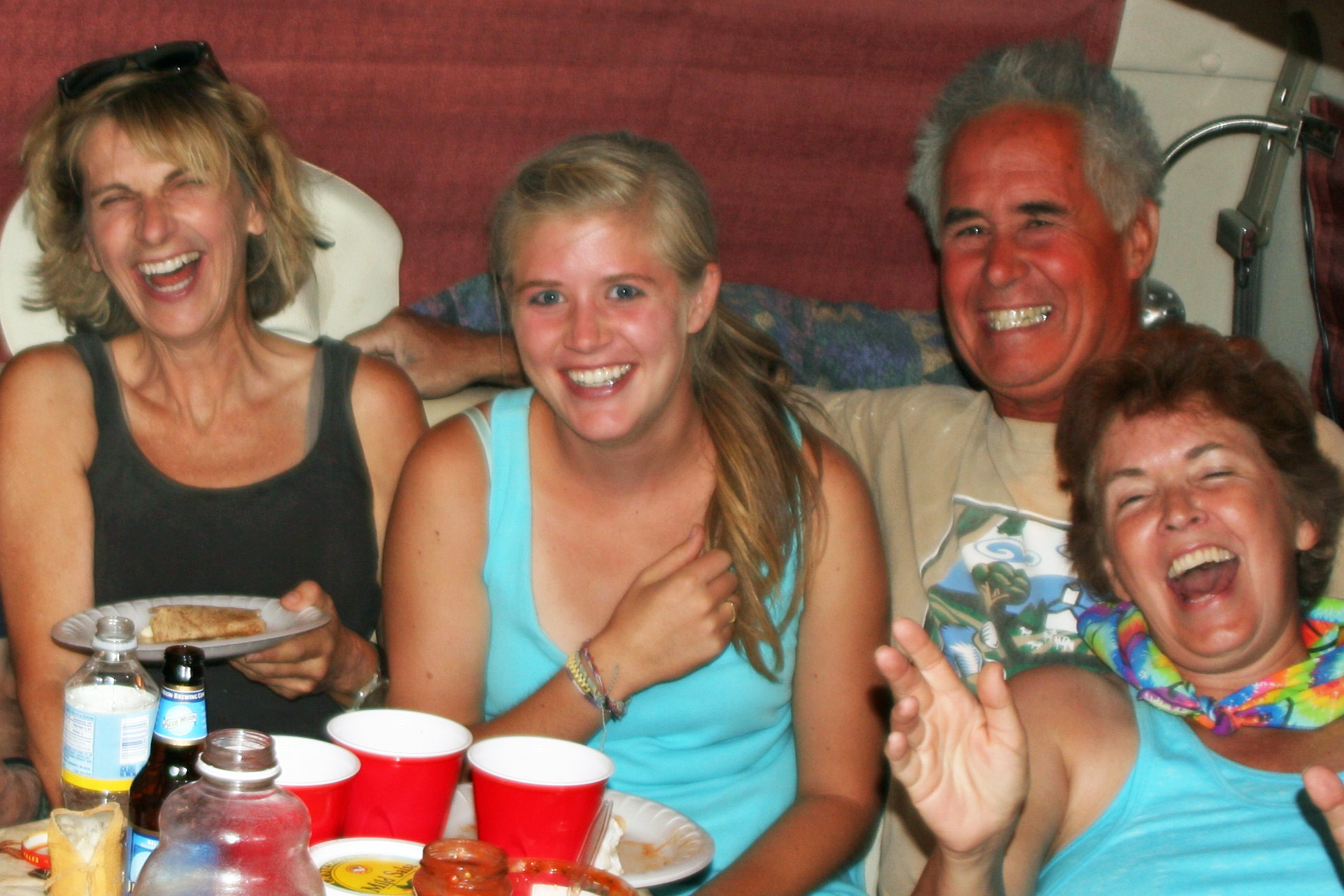 A show of some kind of the other is pretty much guaranteed when you visit the Center Camp Cafe. Here couples practice partner yoga. Are the two guys on the floor center-right twins?