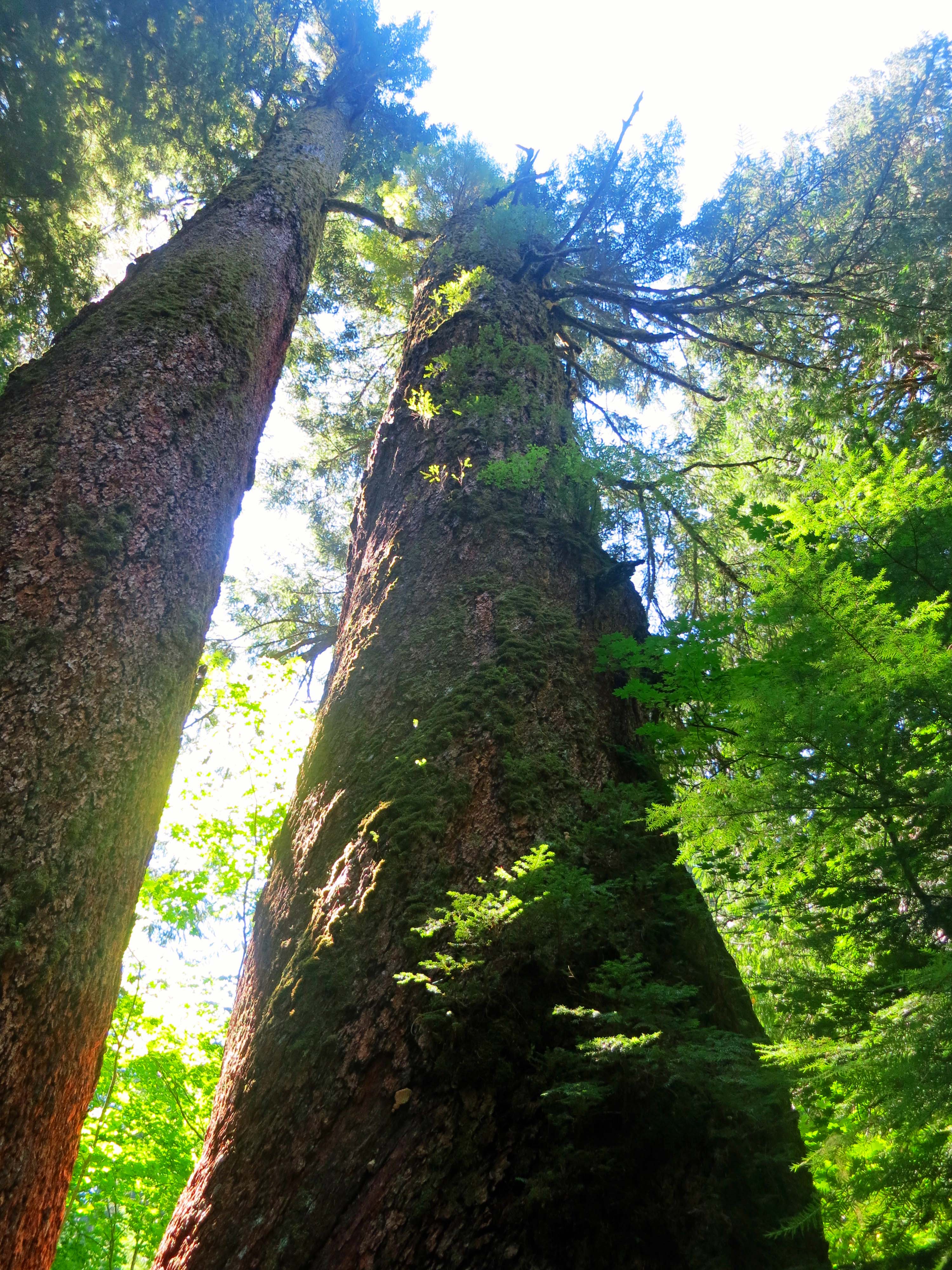 You would expect to find large trees in an area called the Grove of Patriarchs. We weren’t expecting this. Peggy is perched inside the roots of a downed patriarch. Or maybe it was a matriarch.