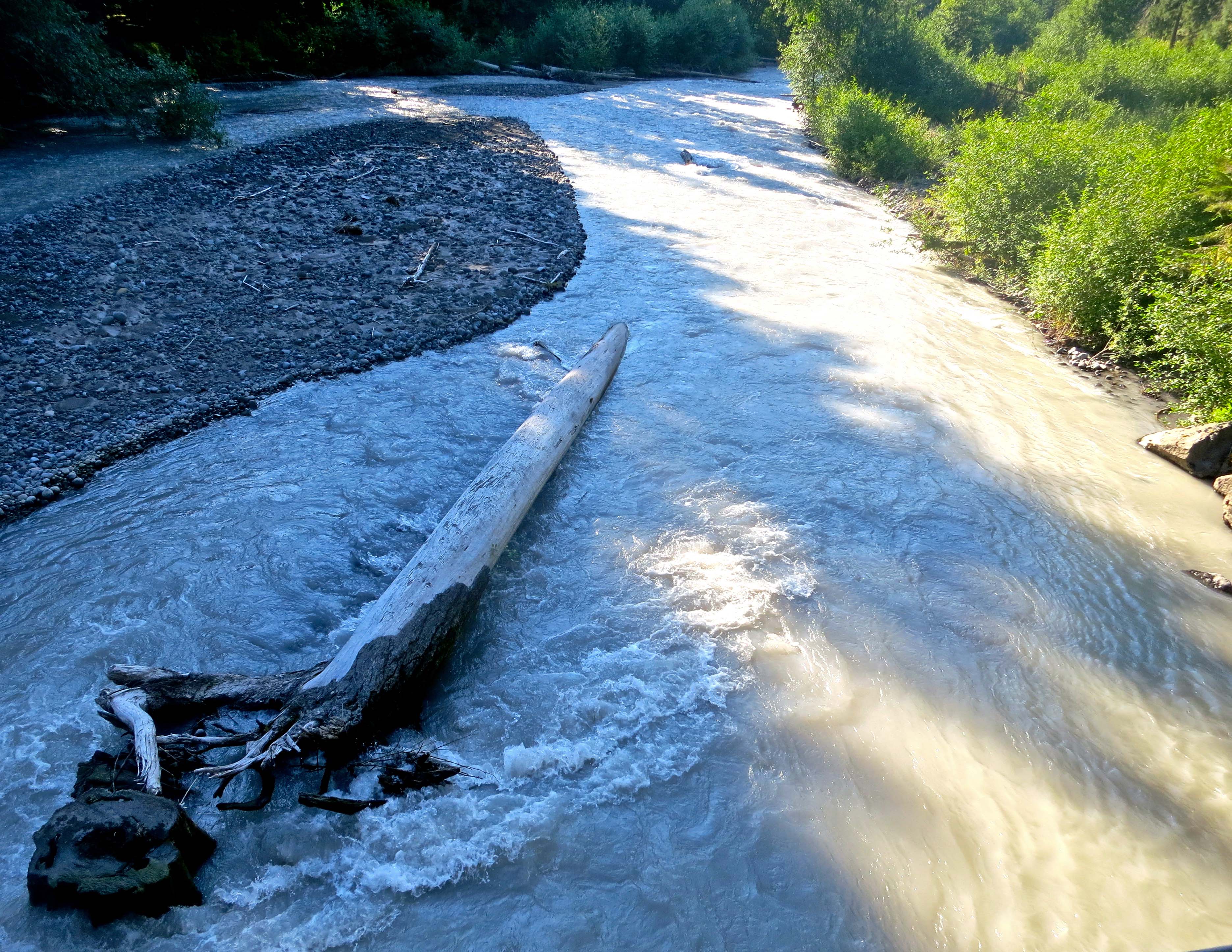 Fed by the Emmons, Frying Pan and Winthrop Glaciers, the White River is given its color by ground glacial rock dust. BTW: Ancestors of my mother barely missed being massacred by indians on the White River around the time Seattle was founded.