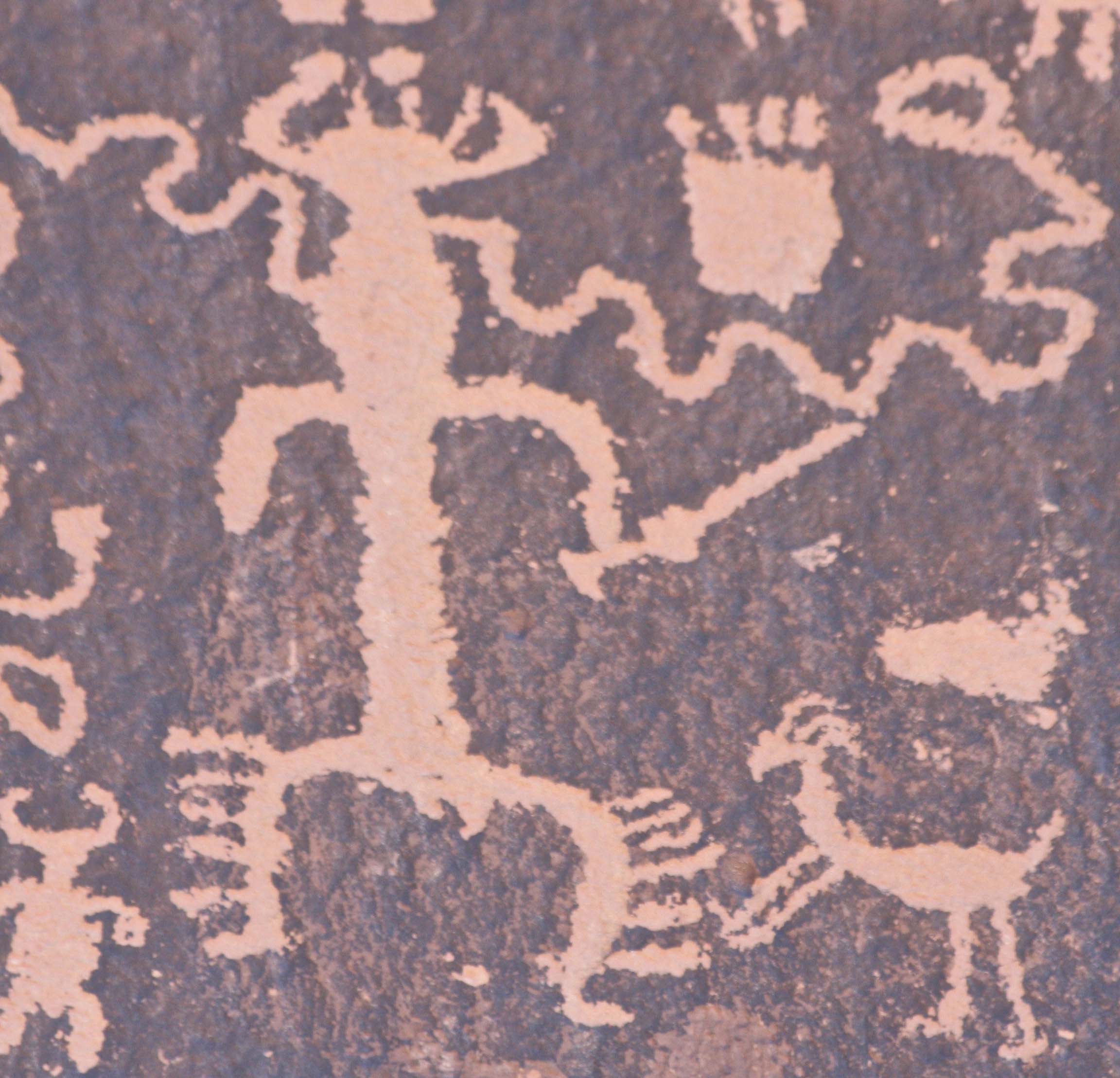 Newspaper Rock sits on the edge of Canyonlands National Park up in the northeastern corner of Utah. It contains all of the news that’s fit to print, or at least all the news from the perspective of local Native Americans who have chipped  away at the rock for over  2,000-years. Who knows what it all means. As the information sign says, “We do not know if the figures represent story telling, doodling, hunting magic, clan symbols, ancient graffiti or something else.” That means the figures are open to interpretation, right? So interpret, I will.