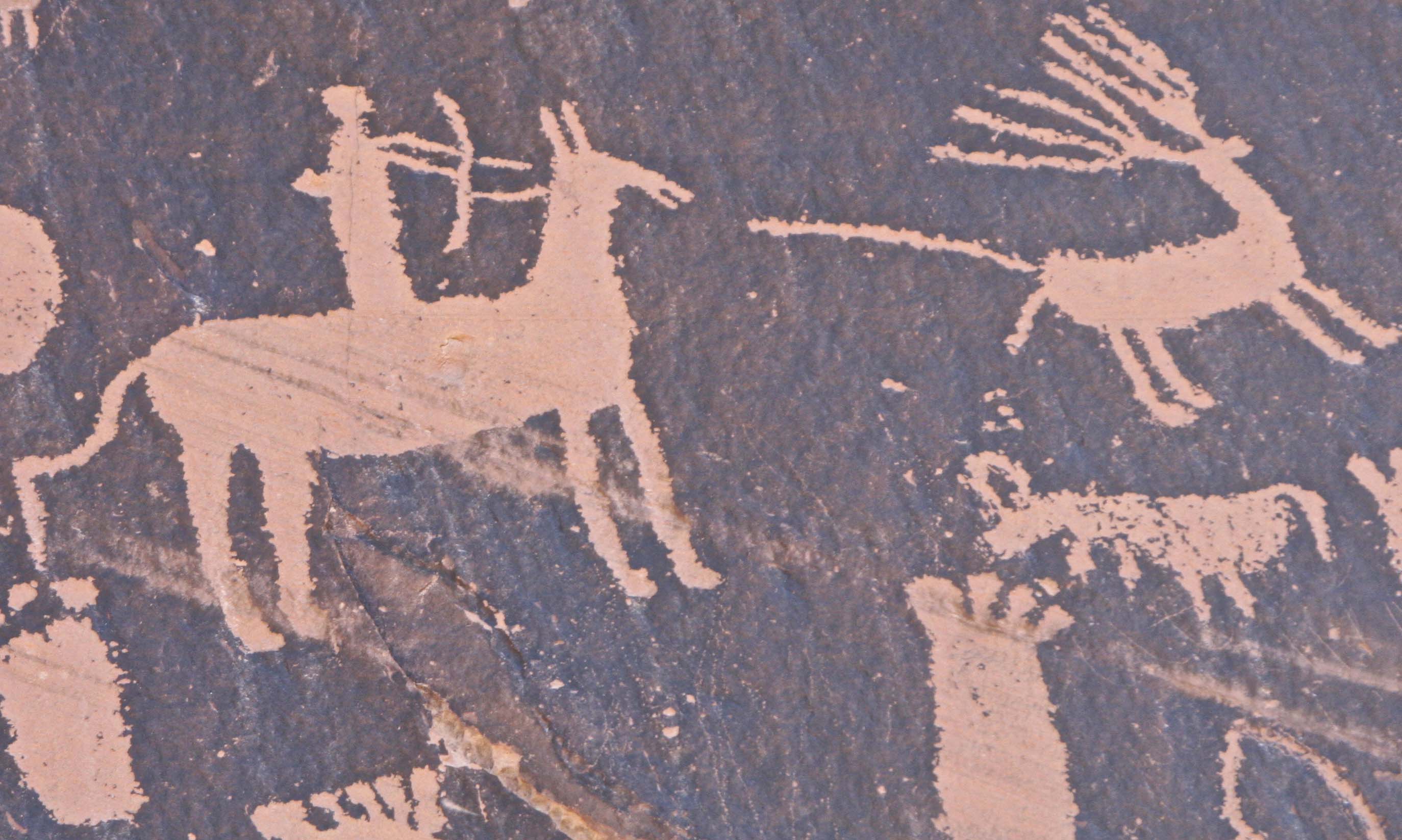 A small section of Newspaper Rock National Historic Site in Utah. Native Americans have been leaving messages on this rock for over a thousand years. Note the guy shooting the elk in the butt with an arrow.