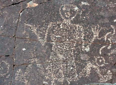 Peggy and I parked Quivera in a small parking lot for the Petroglyph National Monument that we found behind a fast food restaurant. Fifty yards up the trail we began to find petroglyphs. Archeologists believe that there are around 25,000 in the 17 miles.