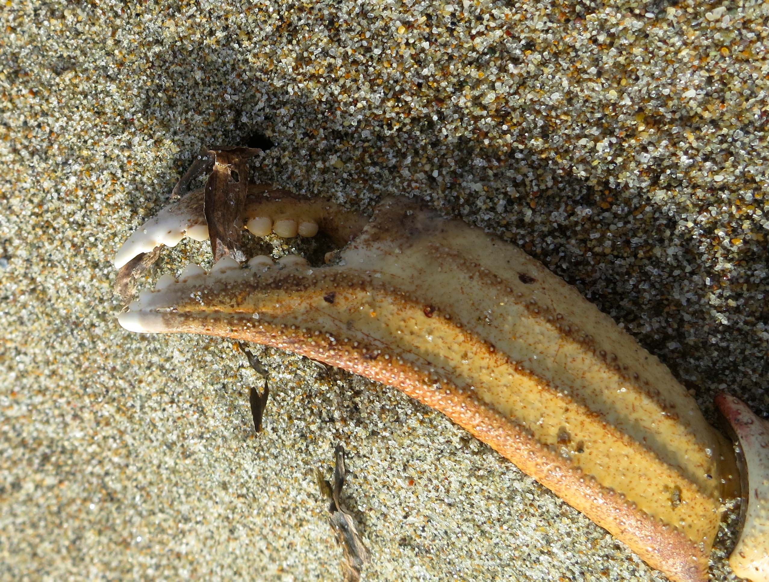 It’s possible that crab was on the menu that night for the raccoons. We found numerous empty shells along the beach. I liked the teeth in this claw.
