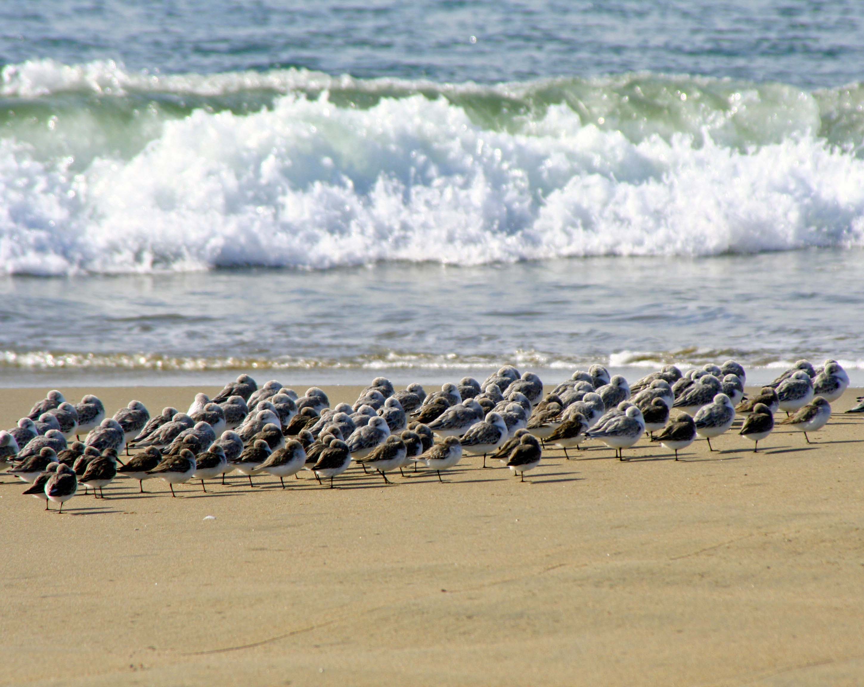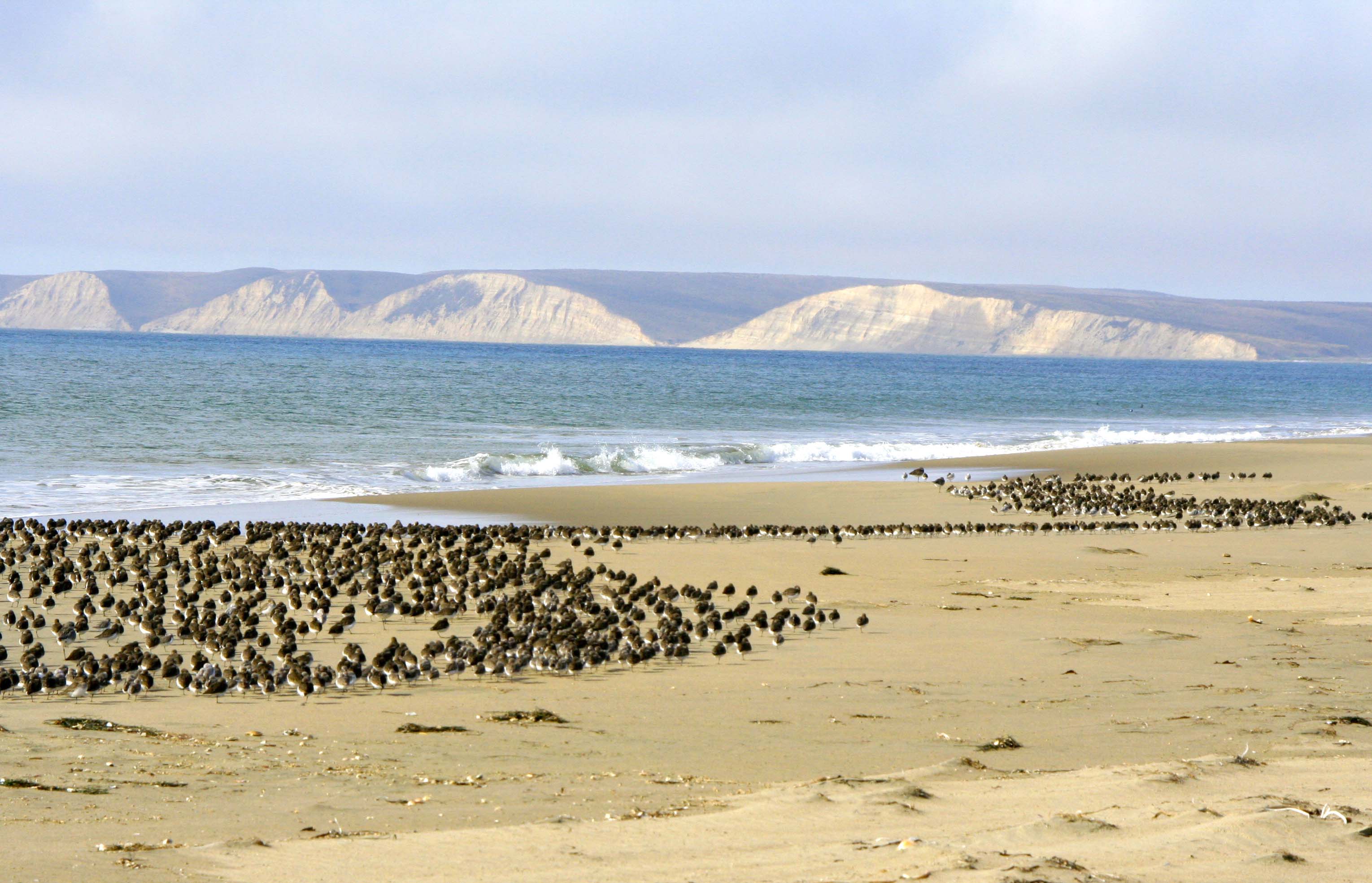 Shore, sea and Sanderlings meet on Limantour Beach at Pt. Reyes National Seashore. (Photo by Peggy Mekemson.)