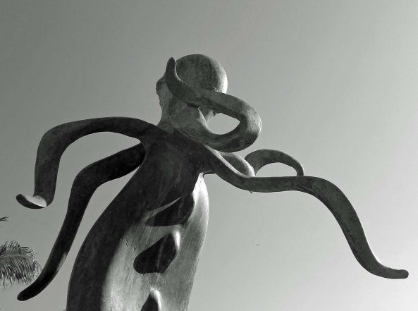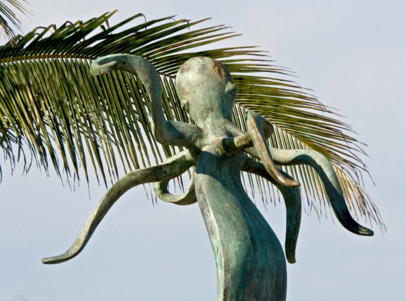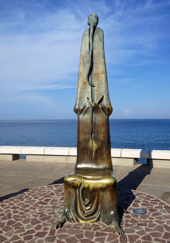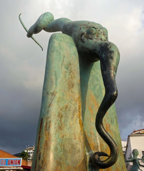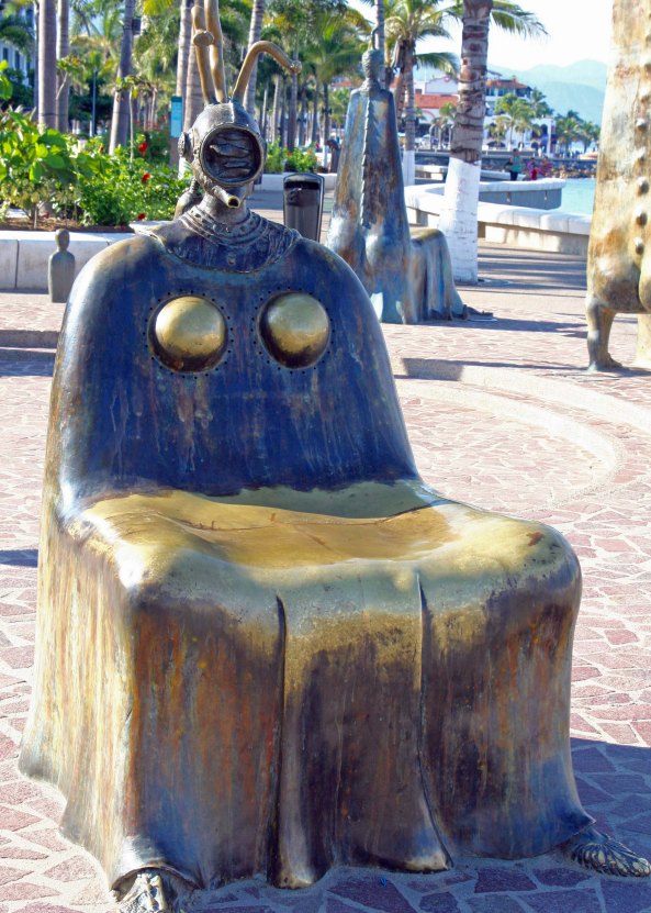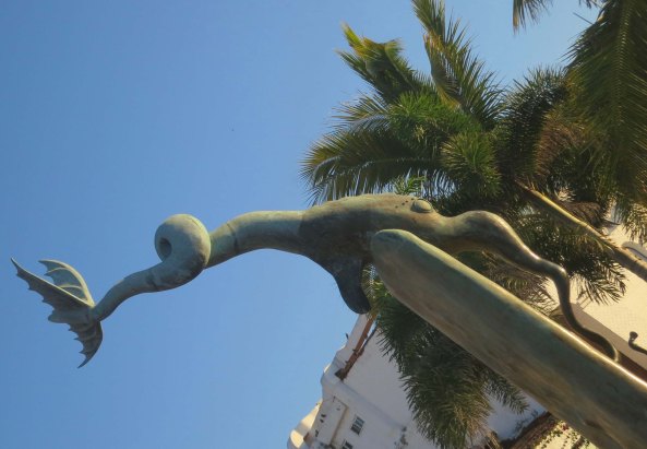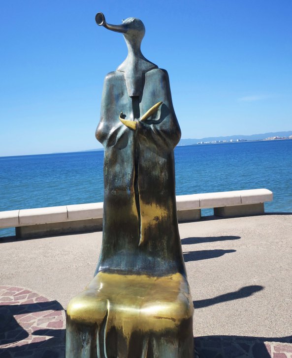 There is a small, narrow island, La Isla del Rio Cuale, on the Cuale River that runs through the heart of Puerto Vallarta where iguanas like to hang out. Open air restaurants along the river provide a front row seat for watching them and the birds. Peggy and I always try to grab a seat right next to the river.