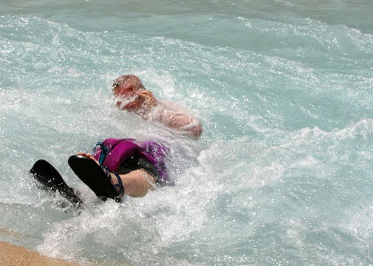 Tom’s fist knocks me on the head when we are halfway through. One of his oars has popped out. I look left and all I can see is churning, raft-eating hole. We are poised on the edge— about to be sucked in! Tom becomes a virtuoso of one-armed madness. Ever so slowly, like about a thousand years, the boat decides to go where he wants. We land, and for one of the few times in his life, my ever-talkative friend is silent.