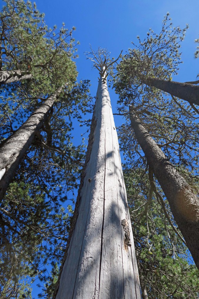 Incredibly straight lodgepole pines provided shade for our camp. The dead tree provides a good example of just how straight these trees grow and why they served as center ‘lodge poles’ for roofs on early pioneer cabins.