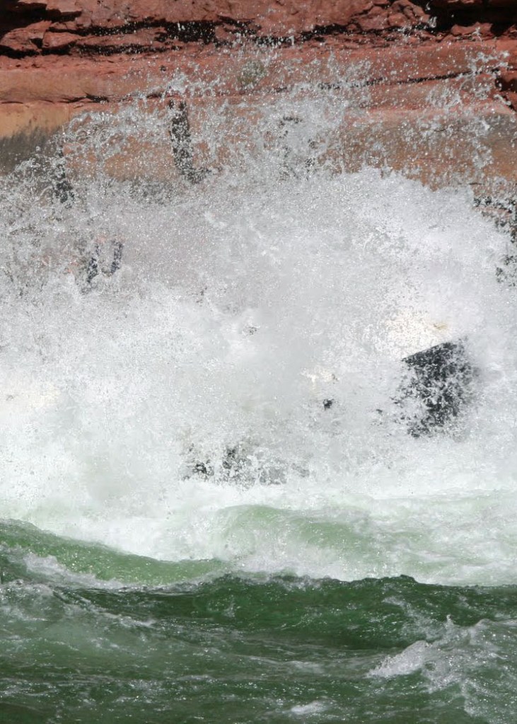 The next day, Megan Stalheim, Dave’s niece, is our boat woman. This is Megan’s first time rowing a raft and her first time rowing through the Grand Canyon. It would seem insane except Megan is a world-class kayaker. She is an expert at reading water. The problem is that our large, fully loaded rafts do not move like feather light kayaks… picture driving an 18-wheel Mack Truck with a Ferrari 458 attitude. We have some adventures.
