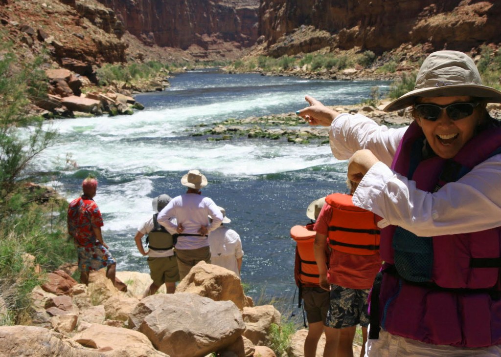 Our group worriedly scouts House Rock Rapid. Peggy shows more enthusiasm than may be called for.