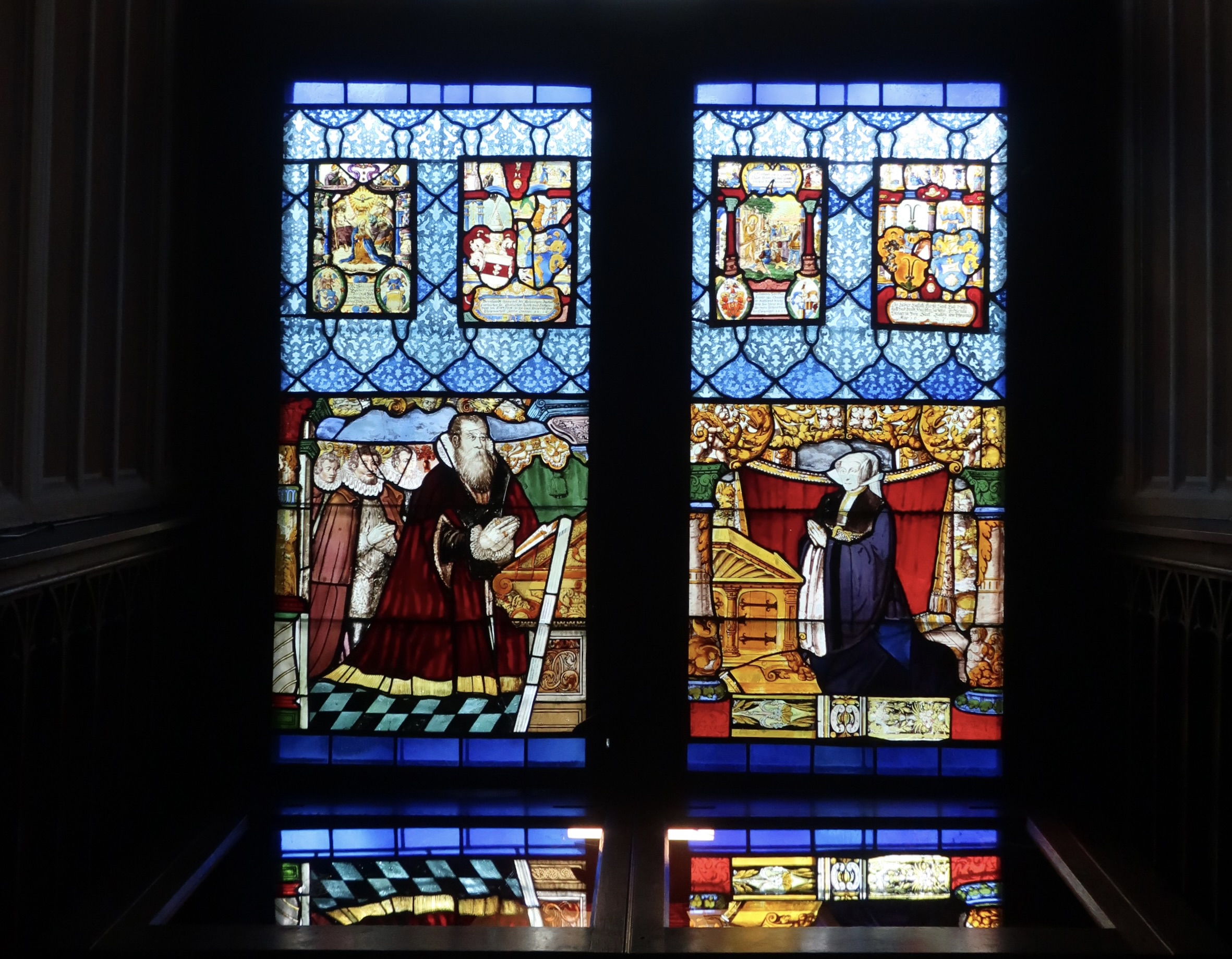 There are statues galore, mainly of past royalty. There’s no doubt about this fellow’s pedigree. He holds a scepter in his left hand representing his kingly power and a ‘globus cruciger ‘ minus its cross in his left hand representing his religious power. A grouchy lion, also a symbol of medieval power, has curled around his legs like a kitty. And then there is the humongous sword and the ‘don’t mess with me’ look in his eyes. Take a look at the various figures on his clothes/armor. I spotted Mercury on his upper left thigh.Speaking of lions, there may be more scattered around the castle than those living in East and South Africa. The ‘globus cruciger’ (orb bearing cross) still has its cross here. I only saw one imperial eagle but it certainly looked ferocious, which, I might add, was reduced somewhat by the bird poop on its head. I noticed that all of the lions in the photo above and the eagle are sticking their tongues out. I wonder if it meant what it does today.Like all good castles, it has a tower with a flag on top. You can see the tower on the left in the blog’s introductory photo.Vacant windows adorned by statues speak to the Castle’s past glory. Again, it is interesting to look closely at the figures. Can you find Mercury?Another perspective…Another photo where the damage done to the castle is obvious. The face of a clock can be seen on the tower to the right.As I recall, it actually was a quarter of five. Note the lightning rod up on top! A lesson learned. As for the hands, I am thinking sun, moon, and star.While we’re on clocks, check out this beauty. It’s a sun dial. Its strange shape is due to the fact that is vertical. Most are on the ground. As for reading it…This impressive building known as the Friedrichsbau, is named after Elector Friedrich IV who had it built in the early 1600s. Lady Justice is perched in a niche top center. Other niches contain generations of Palatine Prince Electors. Here’s Justice holding her scales to determine who is guilty and who is innocent with her sword ready to whack the guilty– or is that smite? One of the princes can be seen on the left. A dragon spout is beneath her.Here’s a closeup of the dragon spout, On a church it would be considered a gargoyle. At Burning Man it would be shooting out fire. (Peggy and I are hoping to return this year.) The scales of justice can be seen in the upper left and another elector is on the right. The scales have holes in them. How just is that?We passed through this gateway on our way to visit the huge wine barrel I featured in an earlier post.Lions hold a cross bearing orb while fair maidens hold bouquets of flowers in their hands and in cornucopias. The one on the left seems, um, a bit provocative?This window is here because I liked how colorfully it reflected its surroundings in an abstract sort of way.Hmmm. Maybe our grandsons had seen enough of castles for one day. Grin. So, I’ll conclude here. Cody, Tasha and Clay’s son, is on top. Chris, Tony and Cammie’s son, is on the bottom. In our next post we will journey back to Yellowstone National Park for a look at some of its scenic beauty.