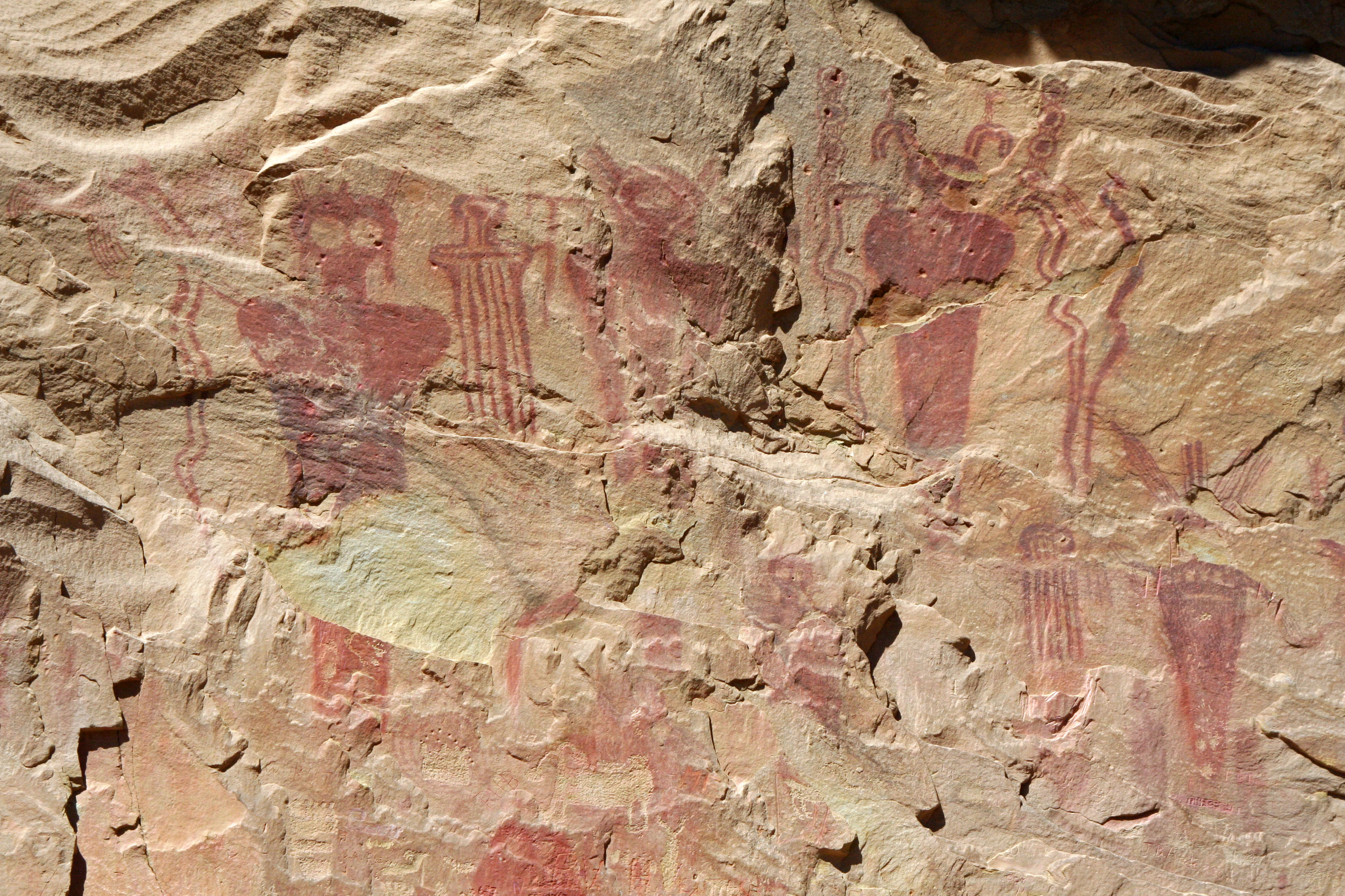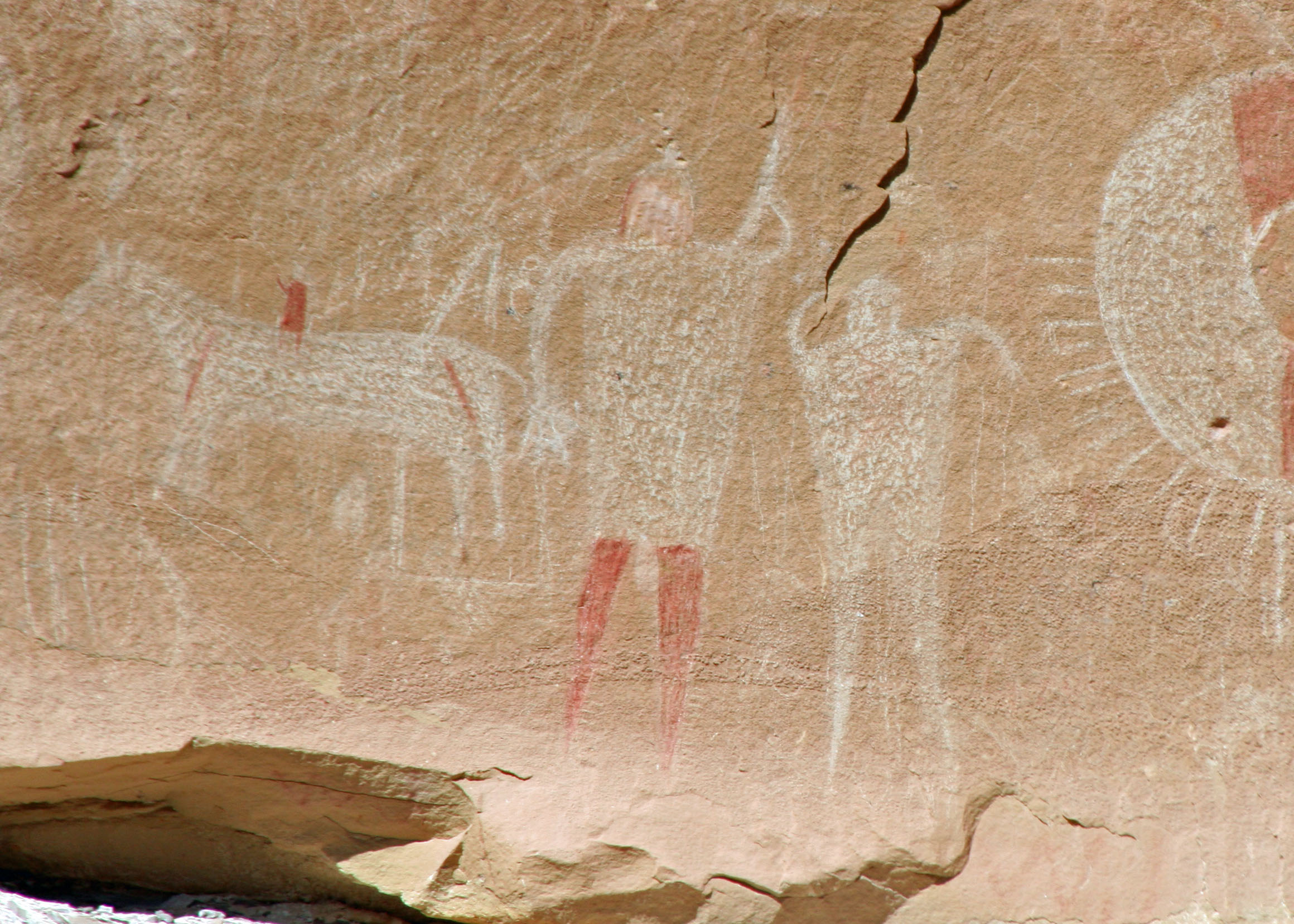 Giant, six-foot long, rock-art lizards work their way up the rock face at Cub Creek. Are they representative of the dinosaur bones Native Americans found at Dinosaur National Monument?