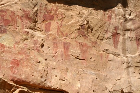Numerous other petroglyphs also demanded our attention. We even found a partial image of Kokopelli, the hunch backed flute player found in ancient rock-art from Mexico to Canada and whose image has been applied on everything from jewelry, to blankets, to pottery in today’s gift shops throughout the West. Kokopelli was both a musician and trickster god, but mainly he was a fertility deity known for his for his bad behavior. Watch out fair maidens one and all.