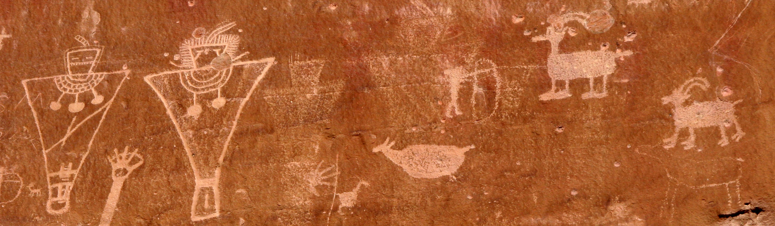 Like much Indian rock-art, Cub Creek petroglyphs in Dinosaur National Monument raise intriguing questions. It would be fascinating to know the story behind this unique anthropomorphic figure. What do the lines stretching toward the sky represent?