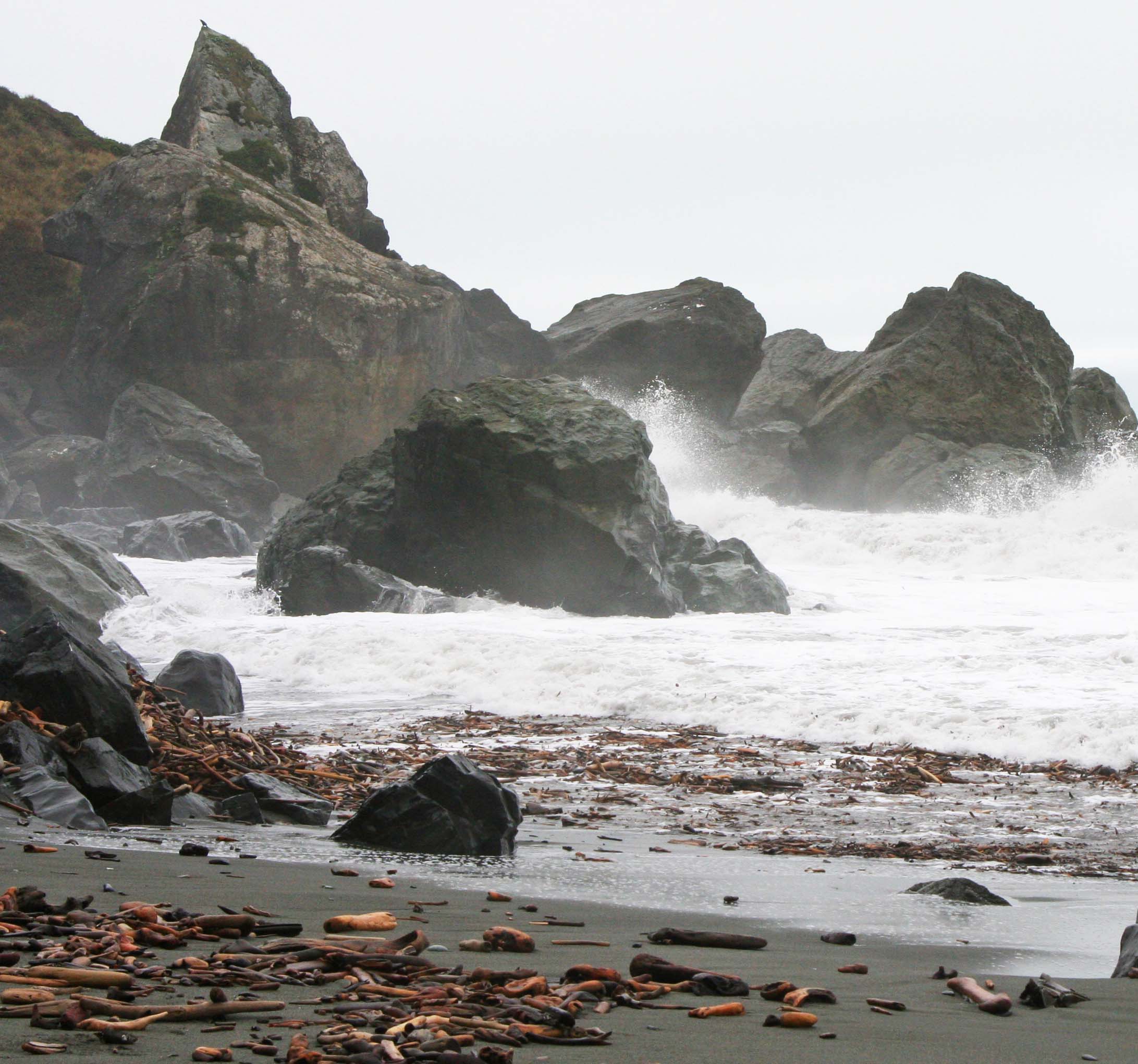 Redwoods National Park is located along California’s rugged North Coast. Stormy seas had left behind piles of driftwood.
