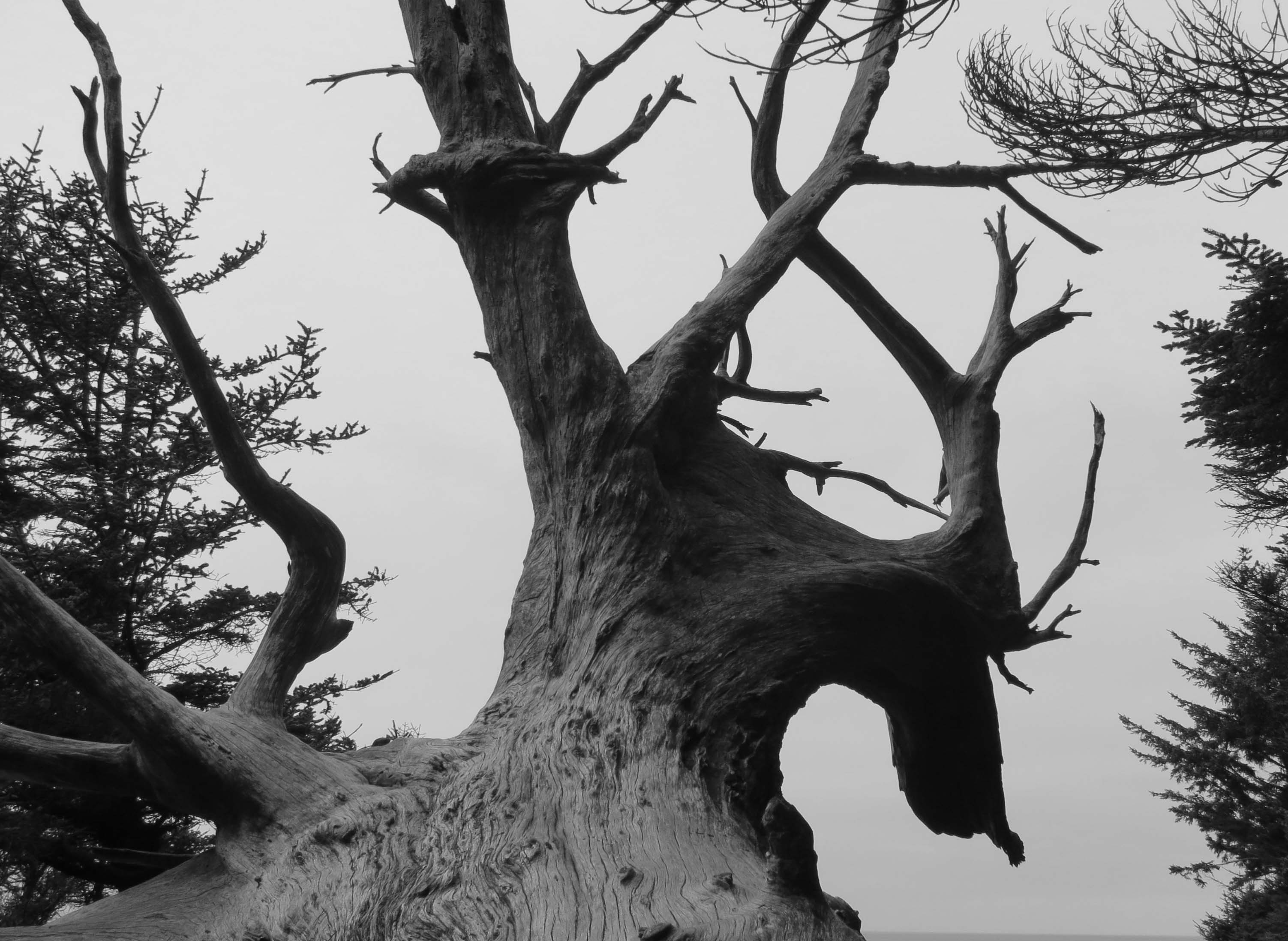 I love trees– everything about them: their size, shape, smell, color, fruit, cones, nuts, needles, leaves, limbs, and bark. I have as many pictures of them as Peggy has of the grandkids, and that’s saying a lot. I even love dead trees, the ones that have passed on to the Great Forest in the sky. Along with other woody things, they may be the only members of the organic world that are as beautiful in death as they are in life.