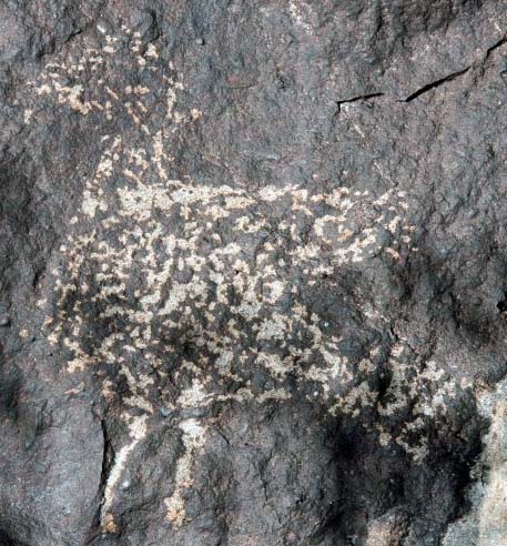 The thrill of finding arrowheads, however, led to a lifelong fascination with the culture of Native Americans. Over the past ten years that fascination has led me to an interest in Indian rock-art or petroglyphs and pictographs. Petroglyphs are pecked or scraped from dark, rock varnish exposing a lighter color underneath. Pictographs are painted on rocks.