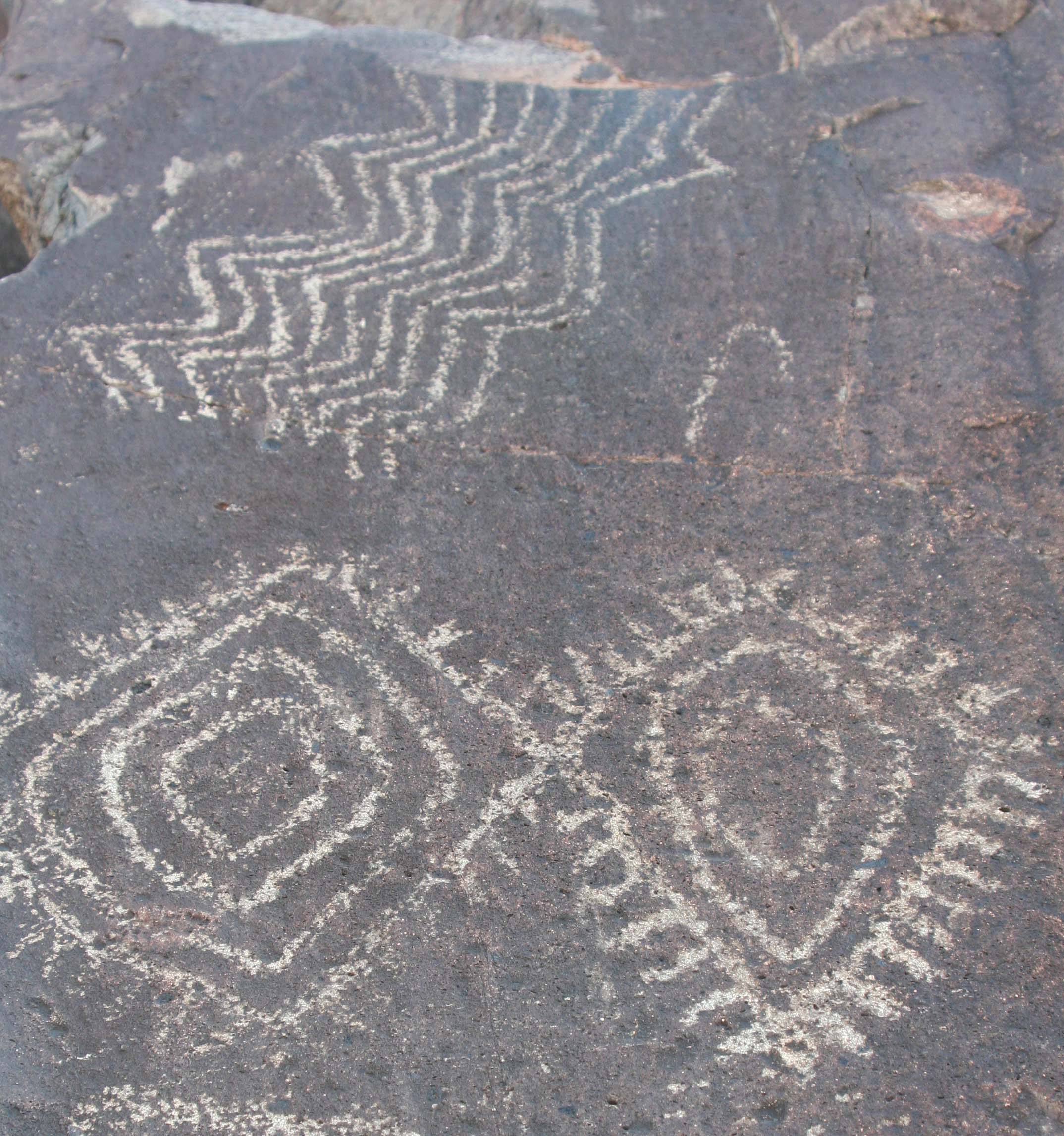 Following are a few of the petroglyphs we found at Three Rivers that featured geometric forms and were perhaps inspired by the use of Datura.
