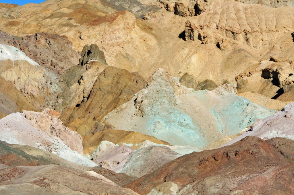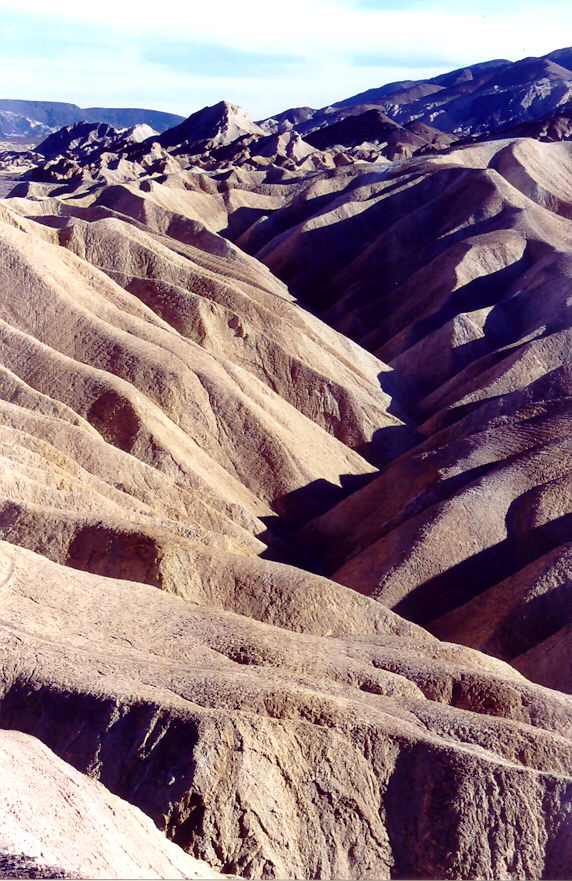 I’ll start with Zabriskie Point, a quick 15 minute drive away from Furnace Creek and the Park Visitor Center. Named after Christian Zabriskie, an early manager of the Pacific Coast Borax Company, it is probably the most photographed site in Death Valley. For good reason. It was once the site of an ancient lake where various sediments sank to the lake bed, giving the area its rich colors today. Early ancestors of both modern day horses and camels left their tracks along the shorelines. Tectonic plates moving beneath the valley lifted the mountains and dropped the valley, giving rise to the erosion which has done such an impressive job of carving out the ‘badlands’ shown in the photos below.